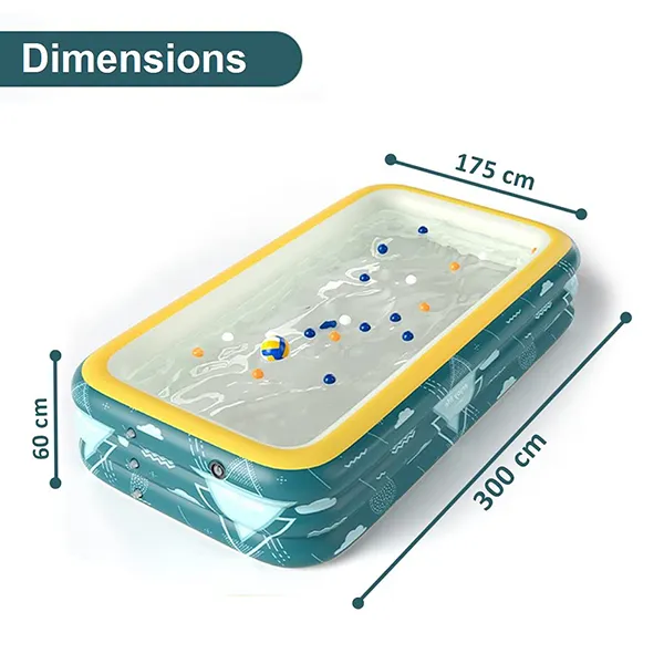 - Family Size Lounge Wireless Pool – It is spacious enough to fit an entire family, including two adults and three kids. “300x175x60 cm” large size inflatable pool helps you and your family enjoy a great cool time in the water.