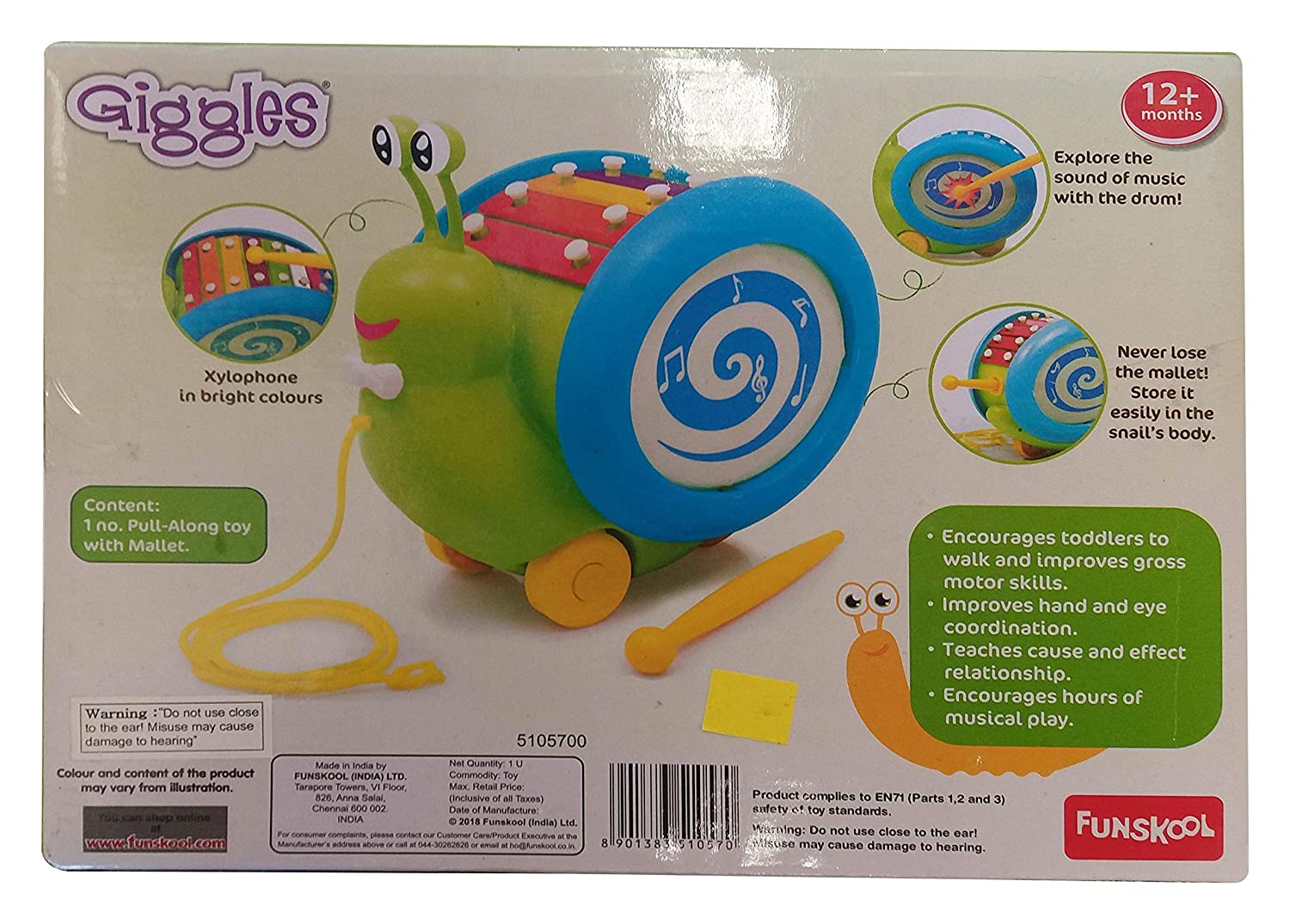 This musical snail will keep your toddlers amused for hours with its bright colours and musical sounds. Simply use the mallet on the xylophone to play different notes or beat the drum. The wheels of the snail will let your toddlers take this toy with them on their musical journey.