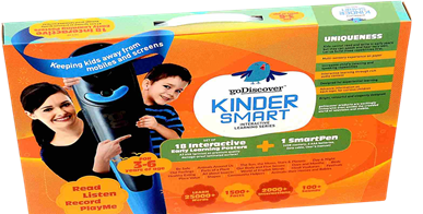 KinderSmart is a box full of surprises for early learners. At the age when they are not reading and writing yet but are building their listening and speaking muscles, we must surround them with options to speak and listen in abundance. In todays technology-driven era, it becomes all the more important to provide progressive yet age-appropriate and safe learning methods. goDiscover Kinder Smart is another special box for the little ones to learn meaningfully and willfully. Gift it to your own child or to someone who matters, because gifting is all about giving value and what better value could we give to our kids than the joy of learning? What are the topics covered? Animals and their homes Being Safe Birds My body All about insects Our feelings Community helpers Healthy food Parts of a plant Days and months Our festivals English words Shapes Day and Night The sun; the moon, the stars and the planets Place Value Hindi Maatraein All about animals KinderSmart kit contains: Set of 18 interactive (laminated) learning posters Rechargeable Interactive pen Data cable