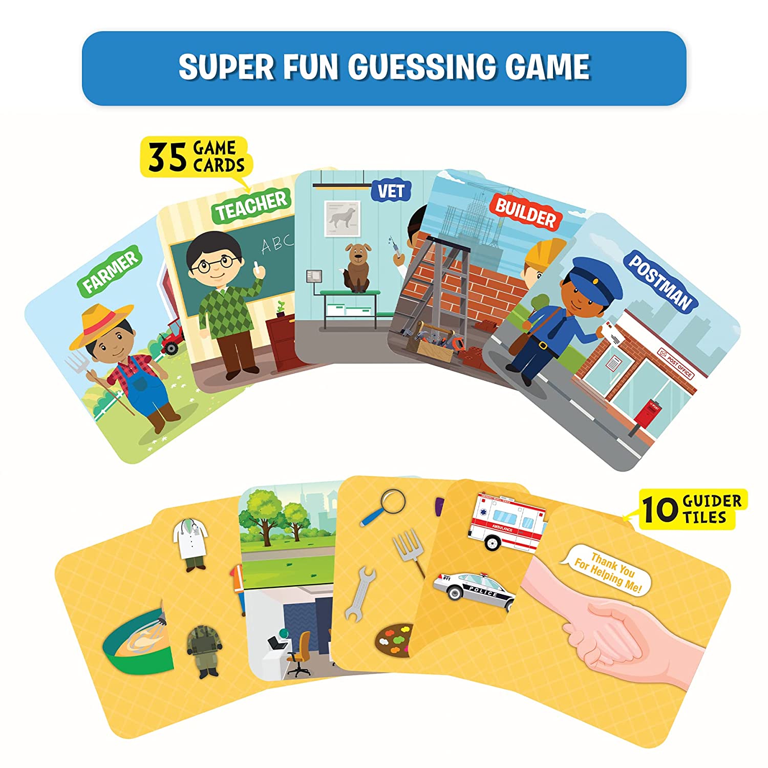 EXCITING CARD GAME OF QUESTIONS – Use the Guider Tiles to ask up to 10 questions to guess the community helper on the card! How do they help us? Do they work indoors or outdoors? LEARN THROUGH PLAY – Ages 3-6 is a period of rapid brain development for kids! Develop Social & Communication, Problem Solving, Decision Making and Creative Thinking skills with Guess in 10 Junior! WHAT YOU GET – One game set includes 35 Game Cards, 1 Card Holder, 10 Guider Tiles and a handy box to store it all. The box size is portable & travel-friendly. NO READING REQUIRED! – This game is designed such that the players need not be able to read to play the game! PERFECT GIFT FOR KIDS – Guess in 10 Junior is a great gift for preschoolers with age-appropriate content! This game is for 2-6 players, learn to play in 5 minutes and enjoy hours of fun!