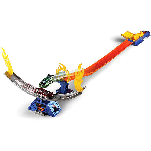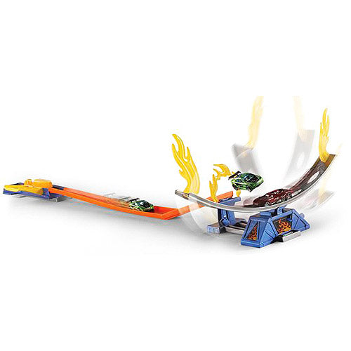 The Hot Wheels Daredevil Crash Track Set is the ultimate track challenge featuring all-out speed with daredevil stunts on the stunt pipe. You’re totally in control of some really insane stunt action. Launch your car to knock the stunt car off the ramp. Or time it right and fly through the ring of fire and save the day.