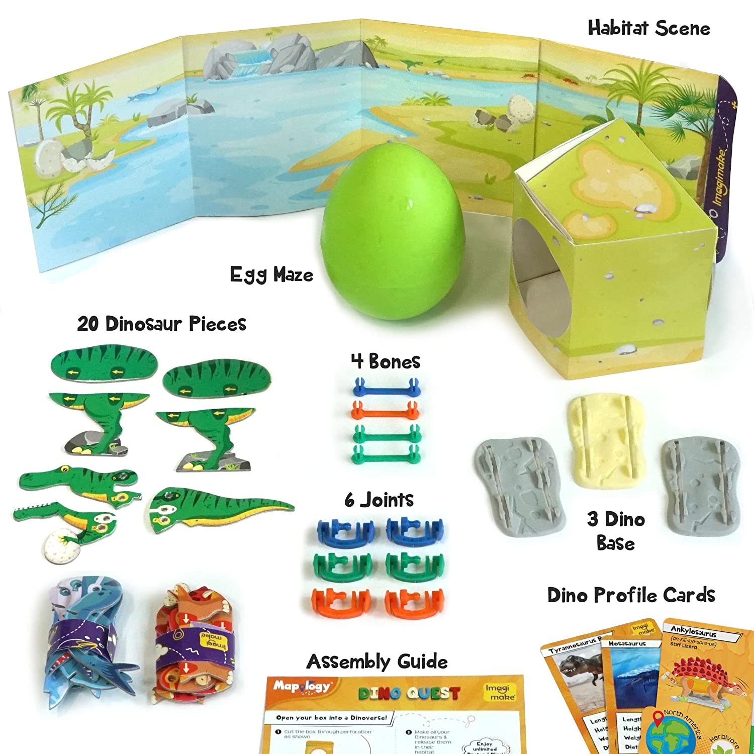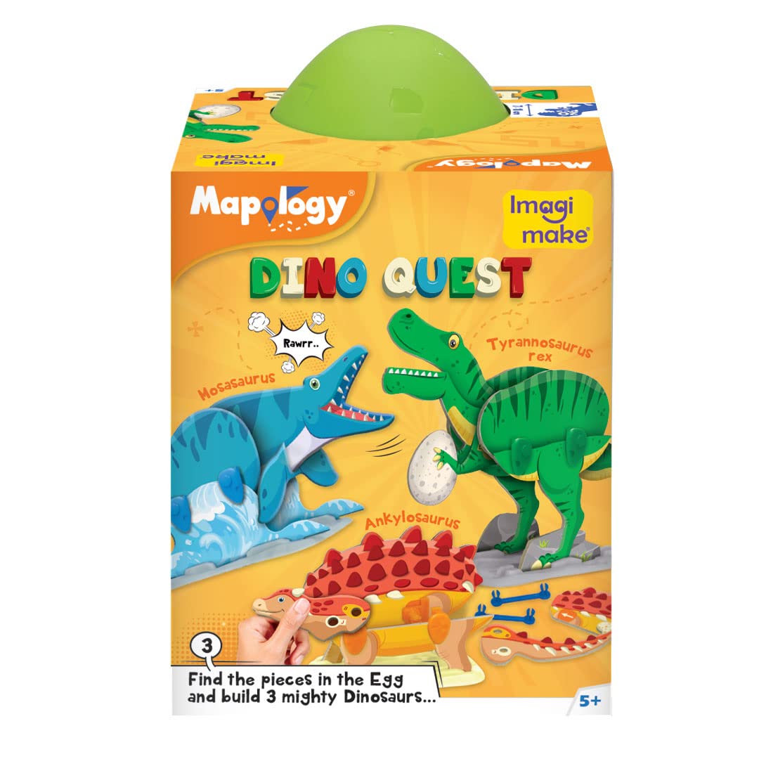 ENTER THE DINOVERSE: Welcome to the exciting world of dinosaurs and join in the Jurassic adventure with Dino Quest. Let the young adventurers explore and discover this Dinoverse and meet mighty dinosaurs like Tyrannosaurus Rex, Mosasaurus and Ankylosaurus. UNLOCK THE MYSTERY EGG: The Dinosaurs are trapped inside this mystery egg, and the child has to solve the puzzle to open it. The puzzle will keep the whole family engaged – push it, squeeze, tap it, jump with it? How will your family unlock this egg? DIY MOVING DINOSAURS: Once unlocked, the egg reveals parts of 3 different dinosaurs and specially designed plastic bones & joints. The kids can follow the pictorial instructions to make their own moving 3D dino models CREATE YOUR OWN HYBRID DINOS: The parts have been designed in such a way that the child can play the role of a genetic scientist and have the experience of building their own hybrids – Anklyo-Rex? Mosa-Rex? What will the next hybrid be? LEARN WITH FLASH CARDS: Did you know which dinosaur was called the ‘Tank of the Dinos’? Or that T-Rex was 12 m wide? The product comes with 5 Dino Profile cards for the young palaeontologists to learn more about their favourite dinos. Also includes 2 blank cards for kids to create the profiles for their own Hybrids.