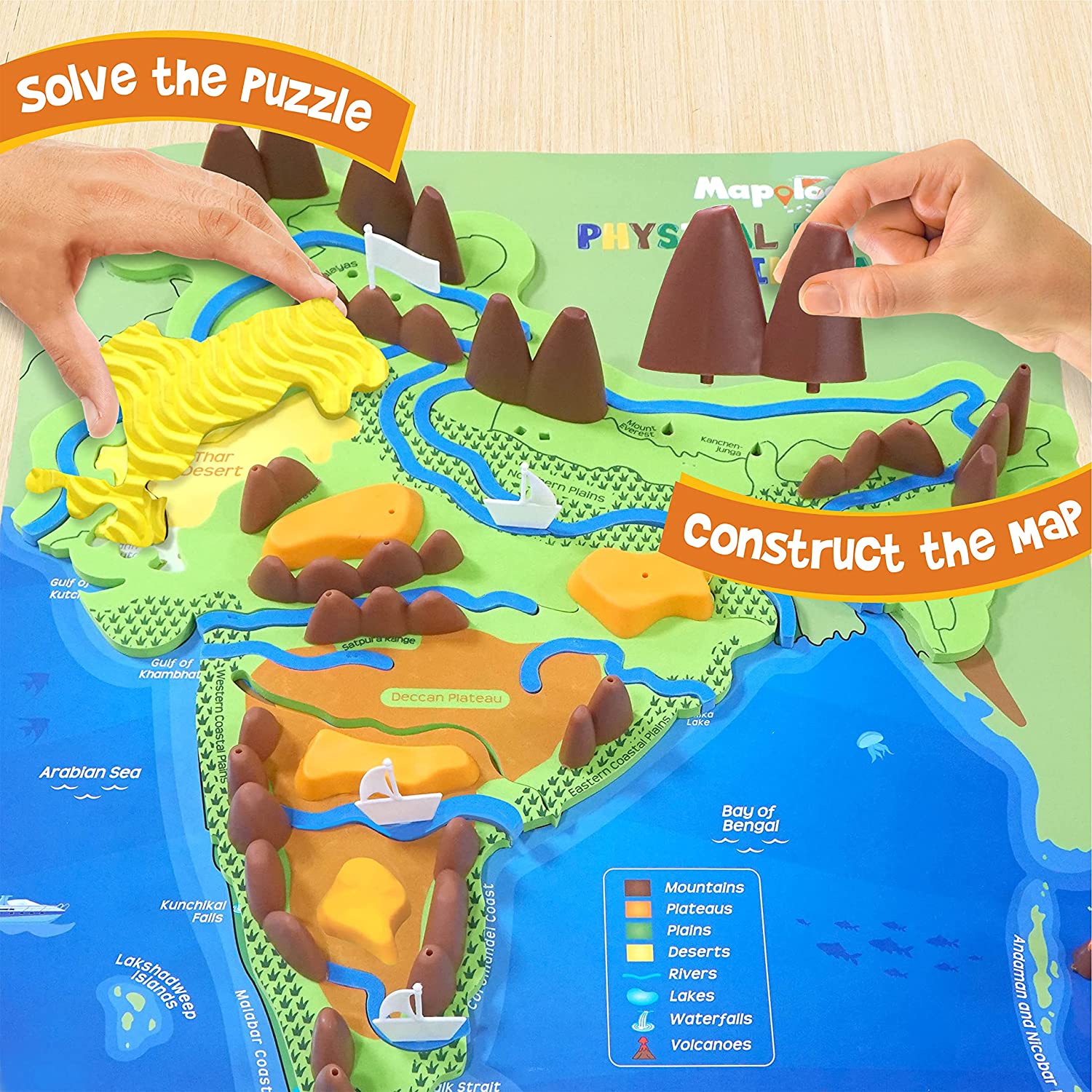 A unique 3D puzzle to learn Monuments of India as you play architect and observe the intricacies of designs from as far back as 300 B.C. This entire 3D puzzle for kids is a great learning aid that comes with 130+ pieces for Model Making, 10 Flags, 20 Info Stickers, 4 Patriotic Stickers, Guide Booklet with 50+ fun facts & instructions. Learn 50+ interesting facts of 10 Monuments of India: India Gate, Taj Mahal, Gateway of India, Hawa Mahal, Charminar, Red Fort, Qutub Minar, Sanchi Stupa, Sun Temple & Golden Temple. This 3D puzzle for kids also contain info stickers for flags for Monuments around the world. Stick the name sticker on one side and location & foundation year of the same Monument on other side of the flag and place the flag on the belonging Monument. Add more fun to the model making activity with our cool Patriotic stickers to flaunt around your friends and family. Kids are free to express their creativity as they say goodbye to messy glue. Puzzles included for creating Monuments models are designed in such a way that it fits in perfectly without any requirement of glue or adhesive. Mapology Monuments of India helps in developing kids imagination, creativity and their hand-eye coordination. This educational toys for kids 5 years is also very popular as a return gift for birthday for kids – Safe & Sturdy Material – complies with US & European safety standards.