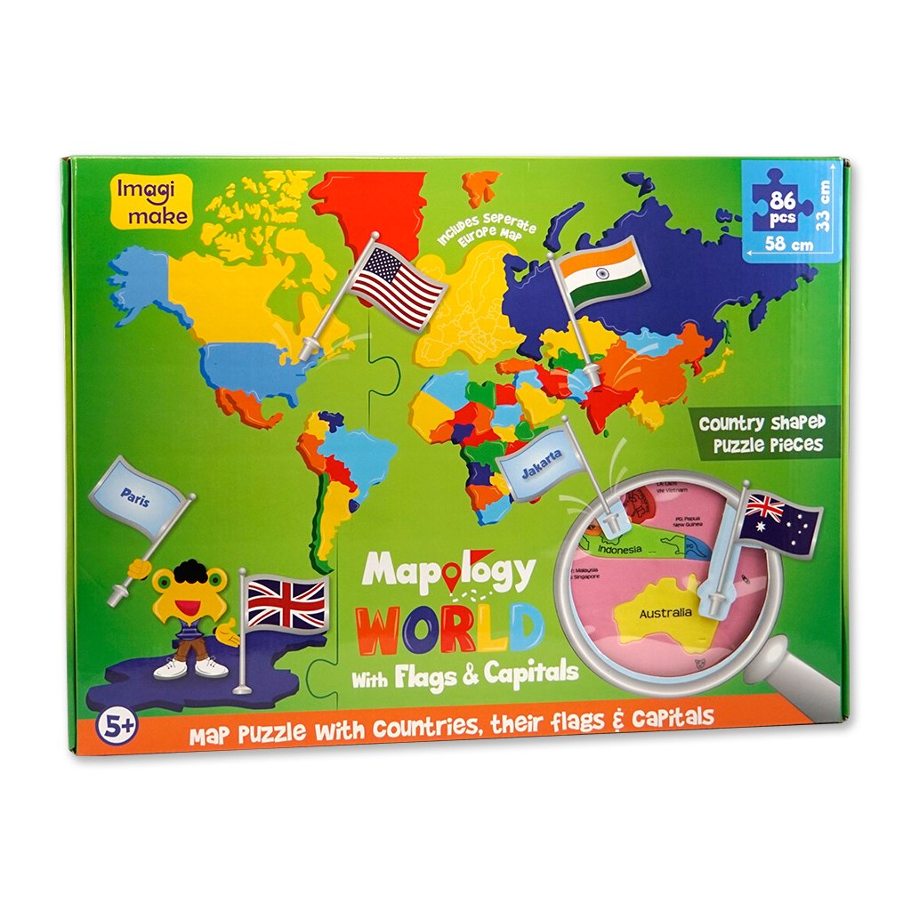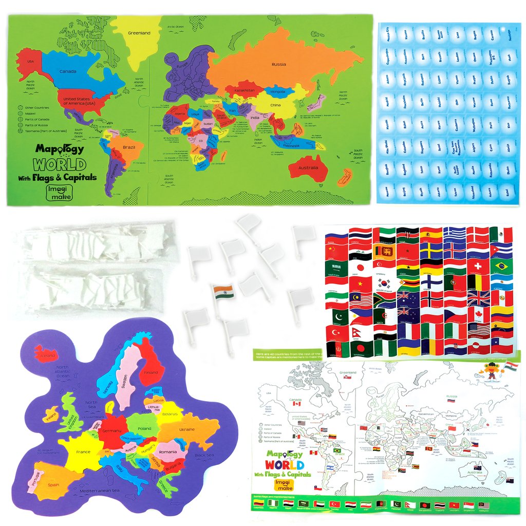 A unique and fun foam puzzle to learn more than 65 Countries, their Flags and Capitals