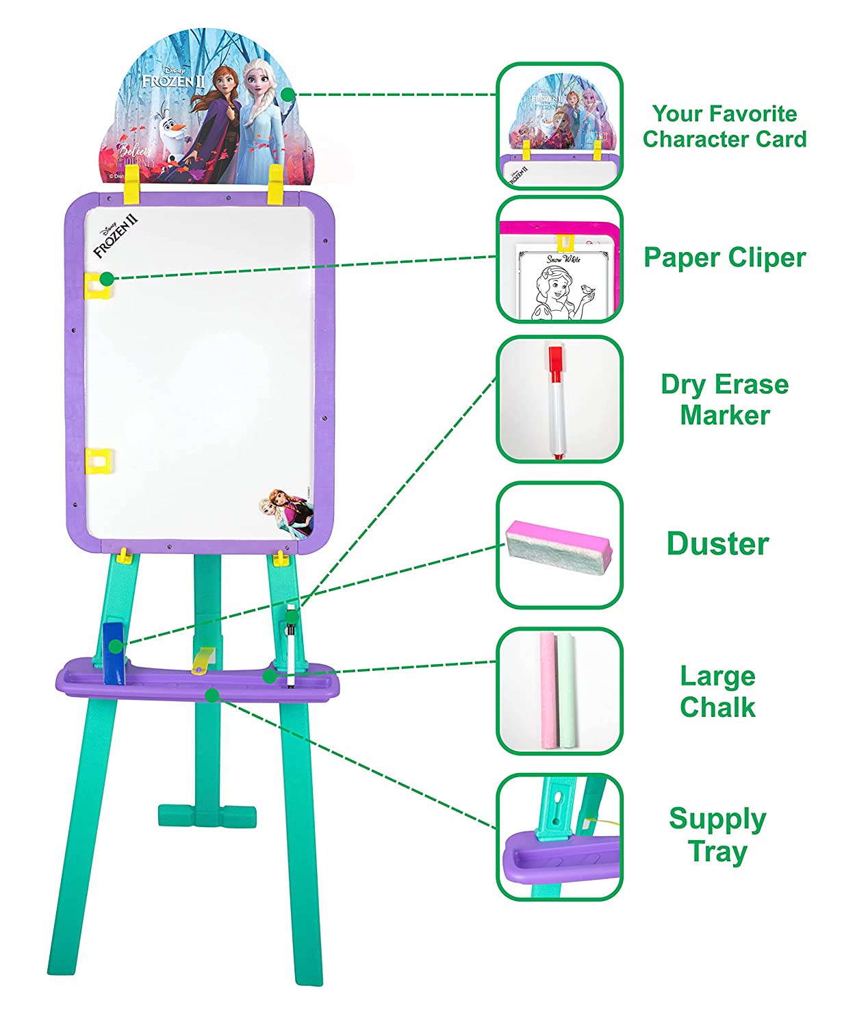 Unleash Your Creativity With This Multi Functional Easel This Two-Sided Easel Features A White Board On One Side And A Chalkboard On The Other Giving Your Child A Variety Of Options And Hours Of Creative Fun. It Includes 8 Activity Which Is A Great Way To Learn And Have Fun At Same Time.