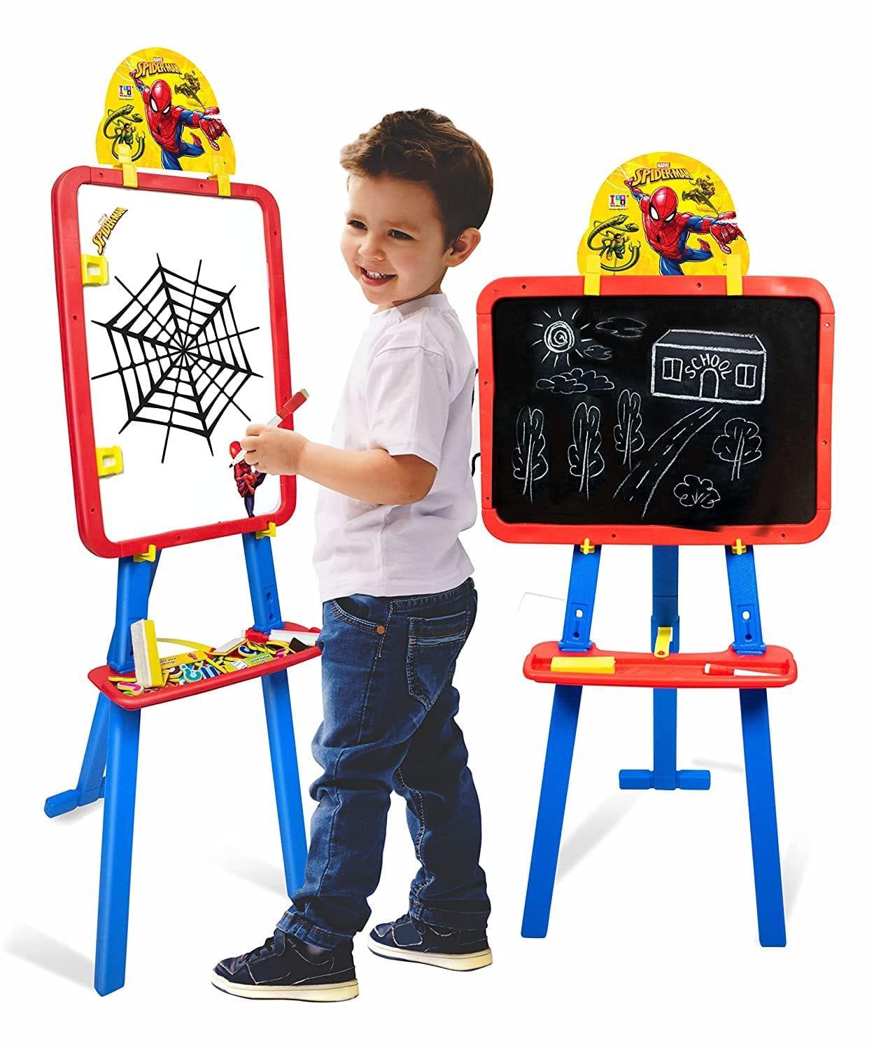 Itoys Spiderman Kids 5 in 1 Easel with Double-Sided Whiteboard & Chalkboard, Multipurpose for Drawing Writing Painting, Magnetic Writing Board for Kids Learning and Other Accessories for Kids and Toddlers