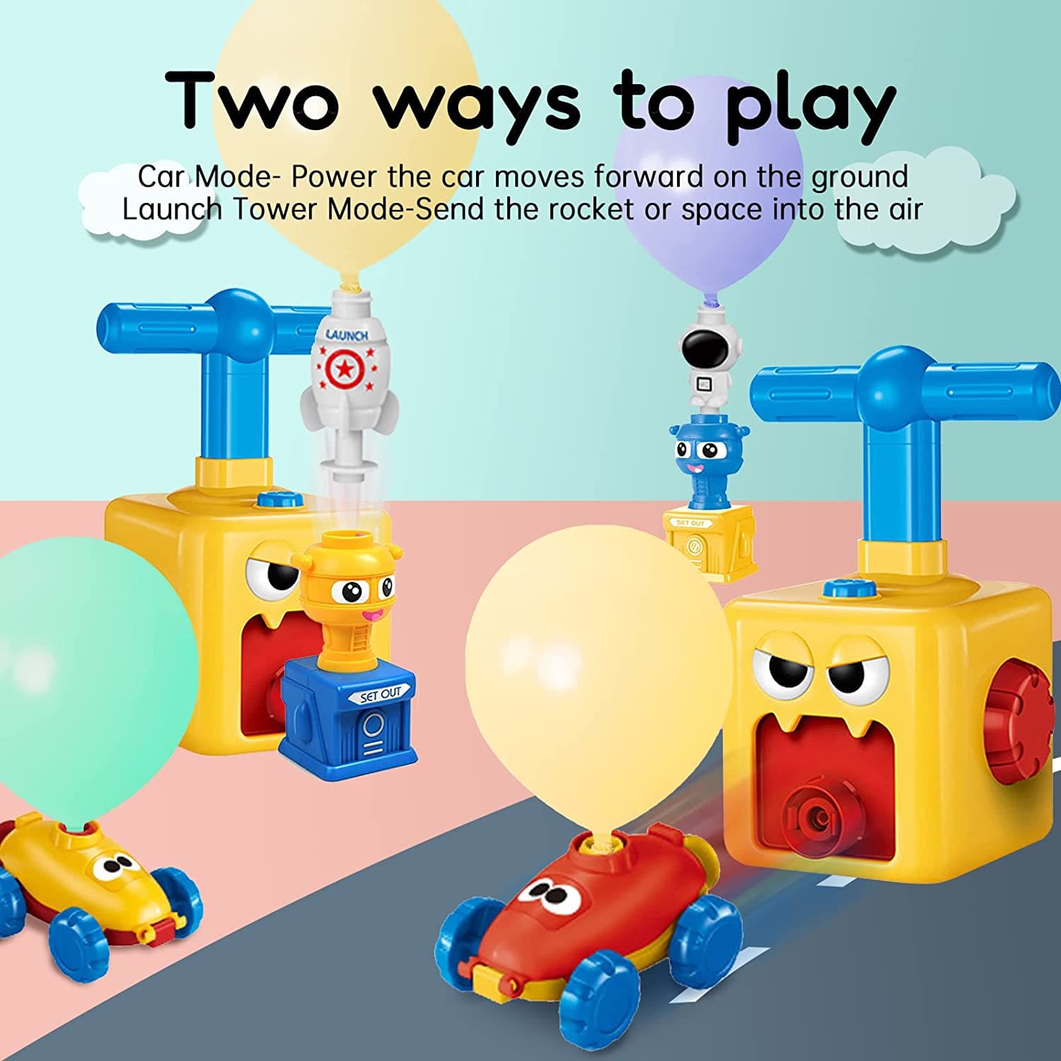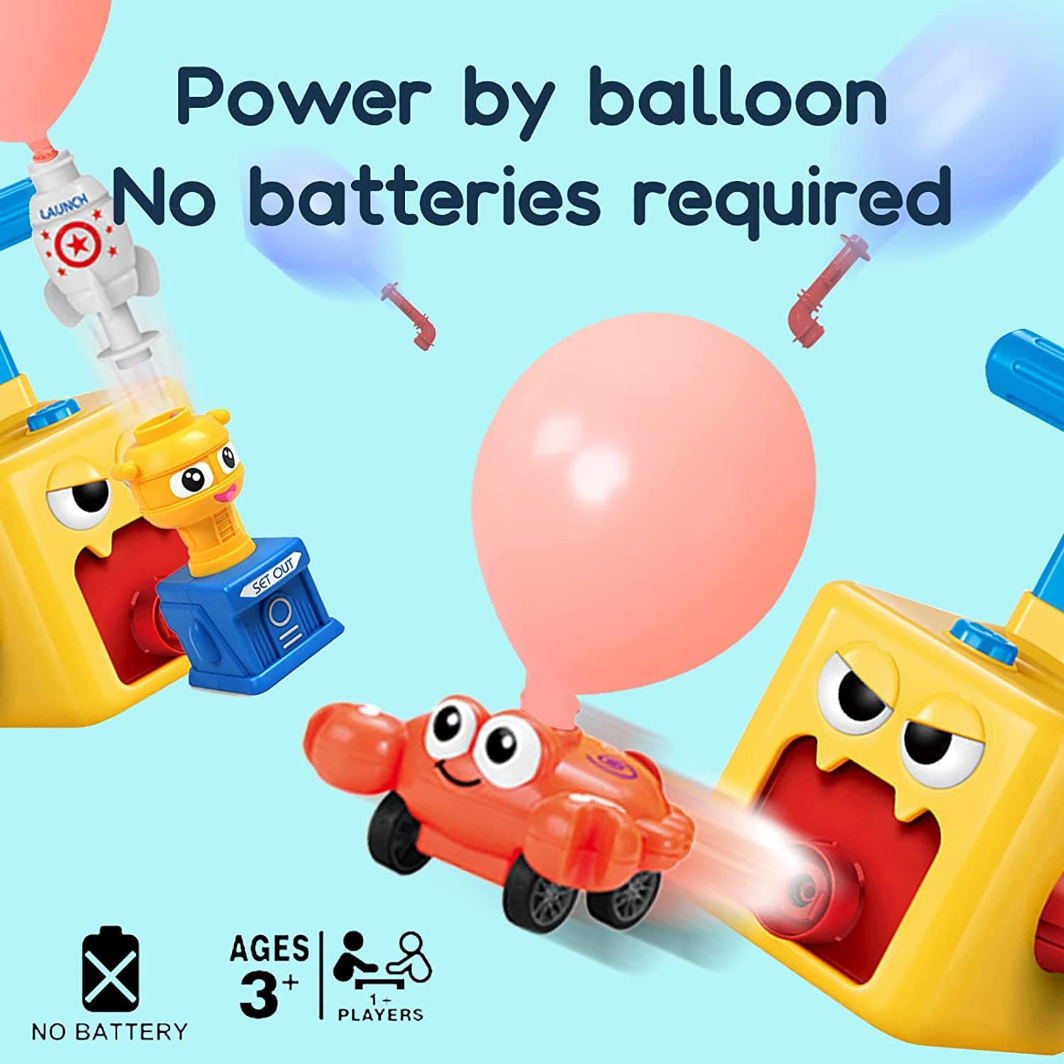 Kids Balloon Powered Car Set Creative Cartoon Aerodynamic Car Balloon Racer Toy Power Balloon Car Balloon Pump Car Balloon Launcher Car