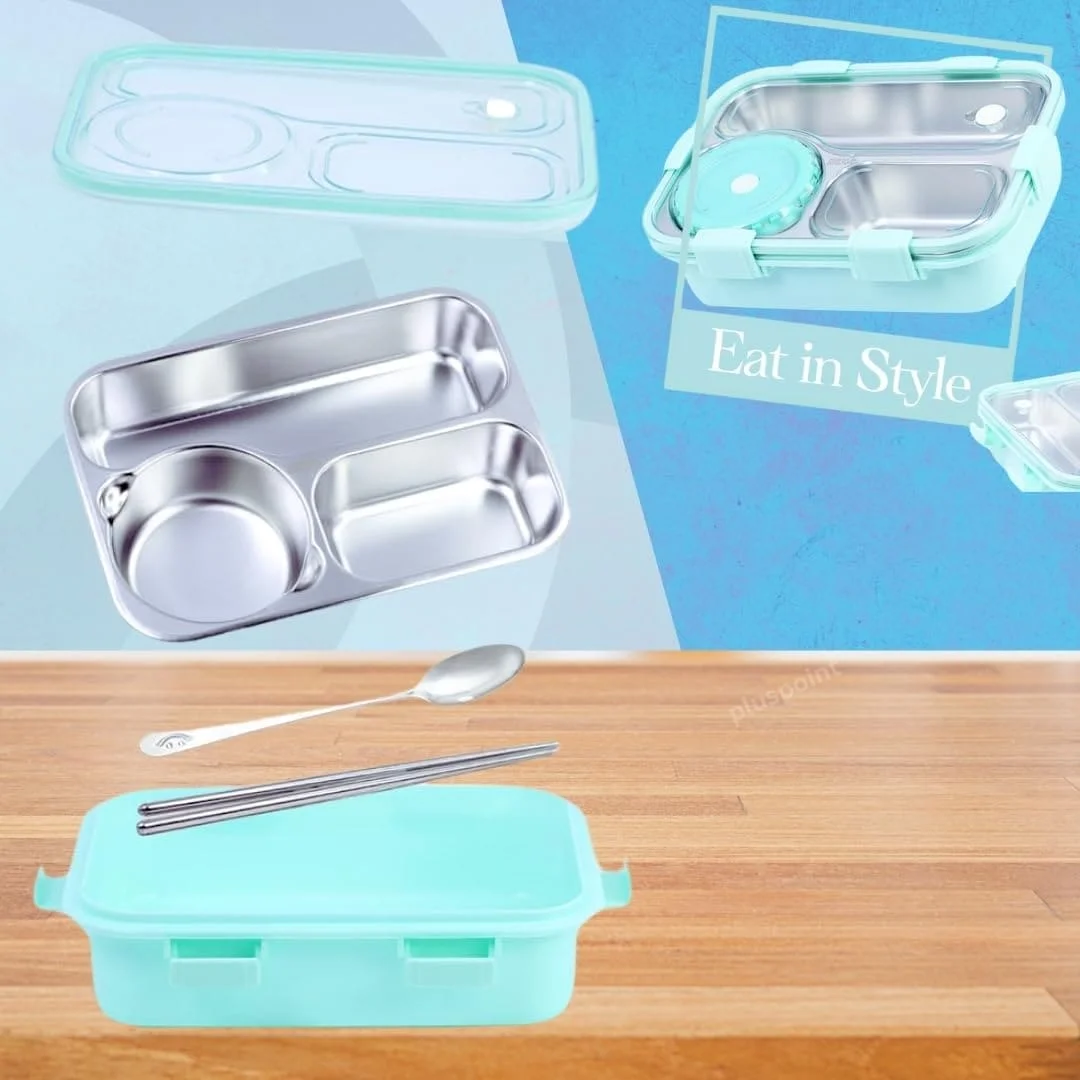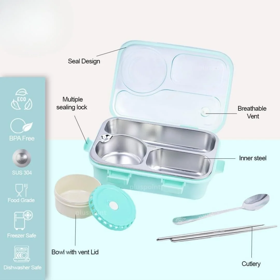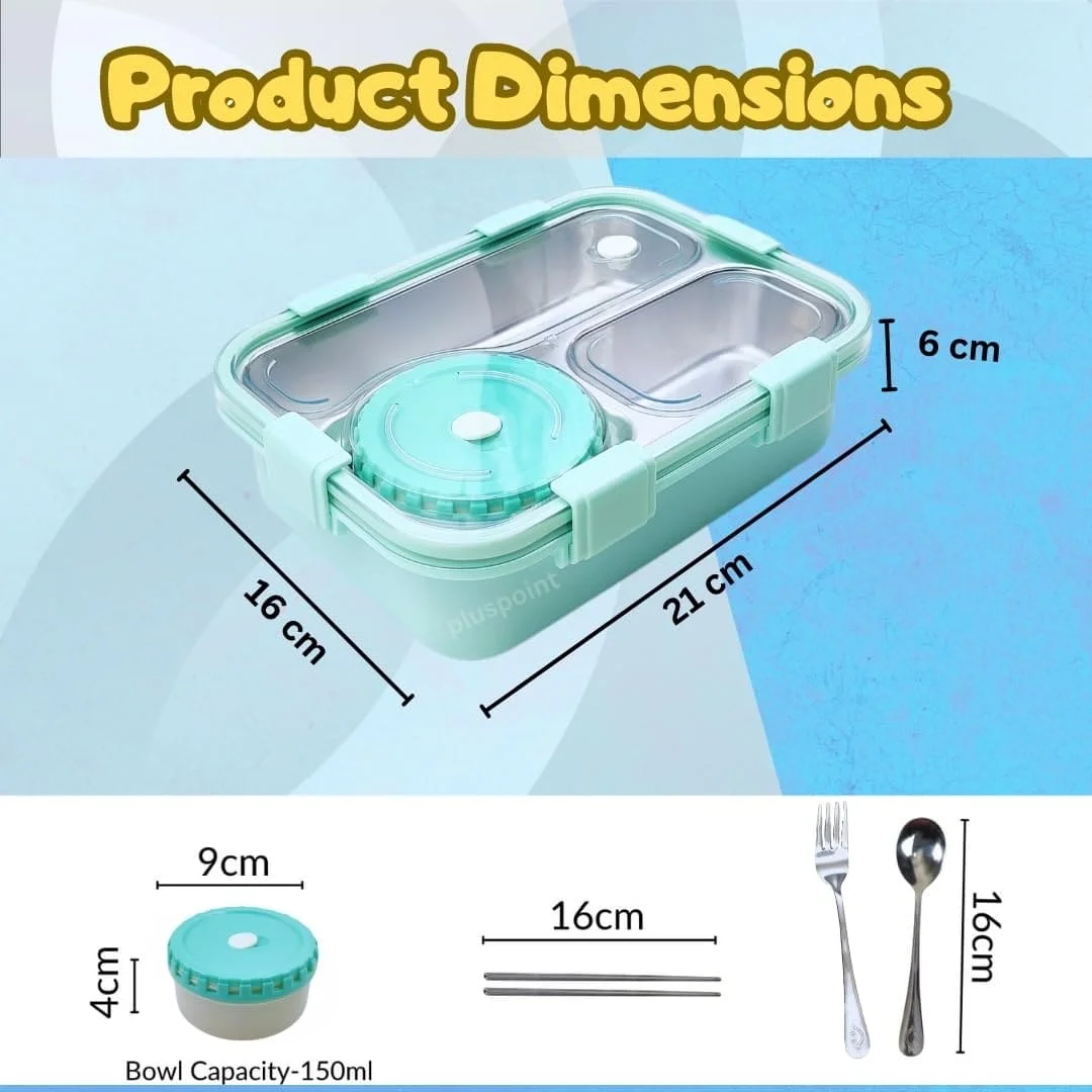 Kids Lunch Box for School, Air Tight Portable Lunch Box with Utensils, Stainless Steel Lunch Box with Containers, Leak Proof Bento Box for Kids- Green