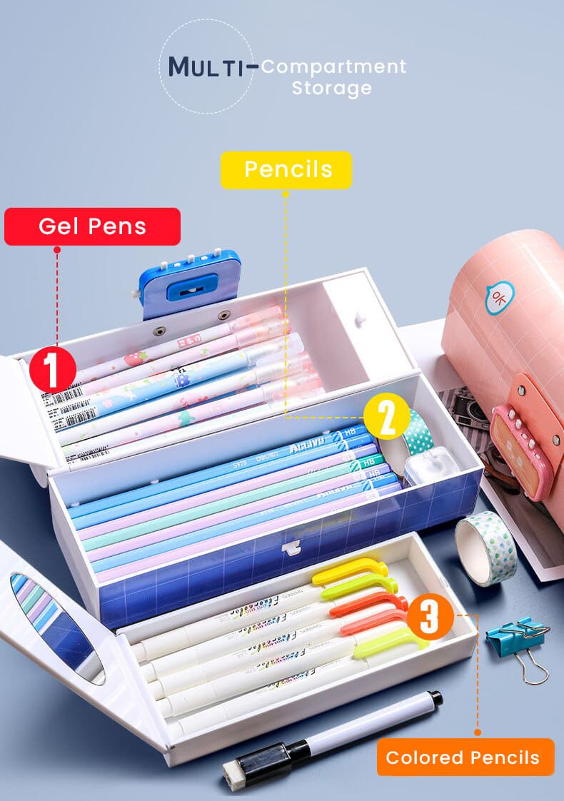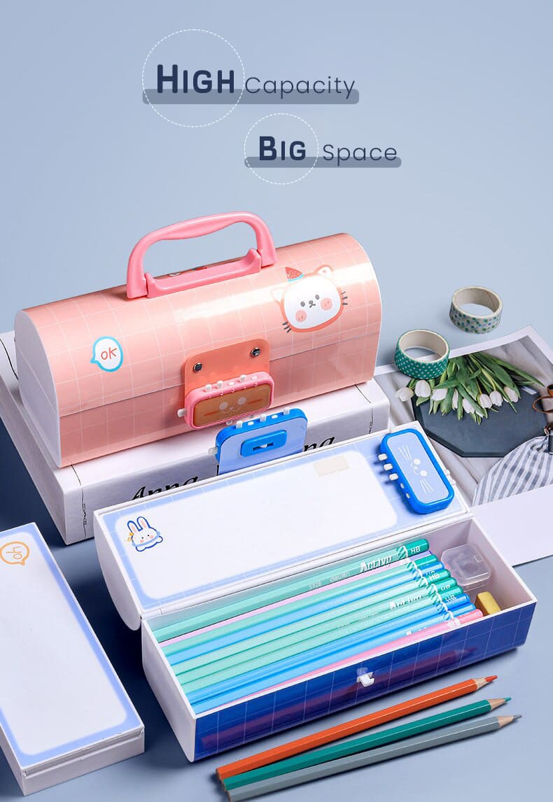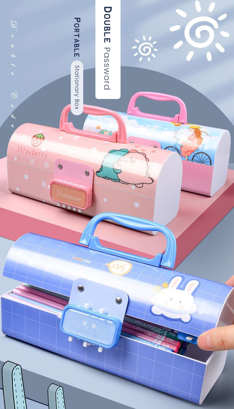 Kids Pencil Box Stationary Set with Different compartments for Storage of Kids Essentials (Treasure Box Pink)