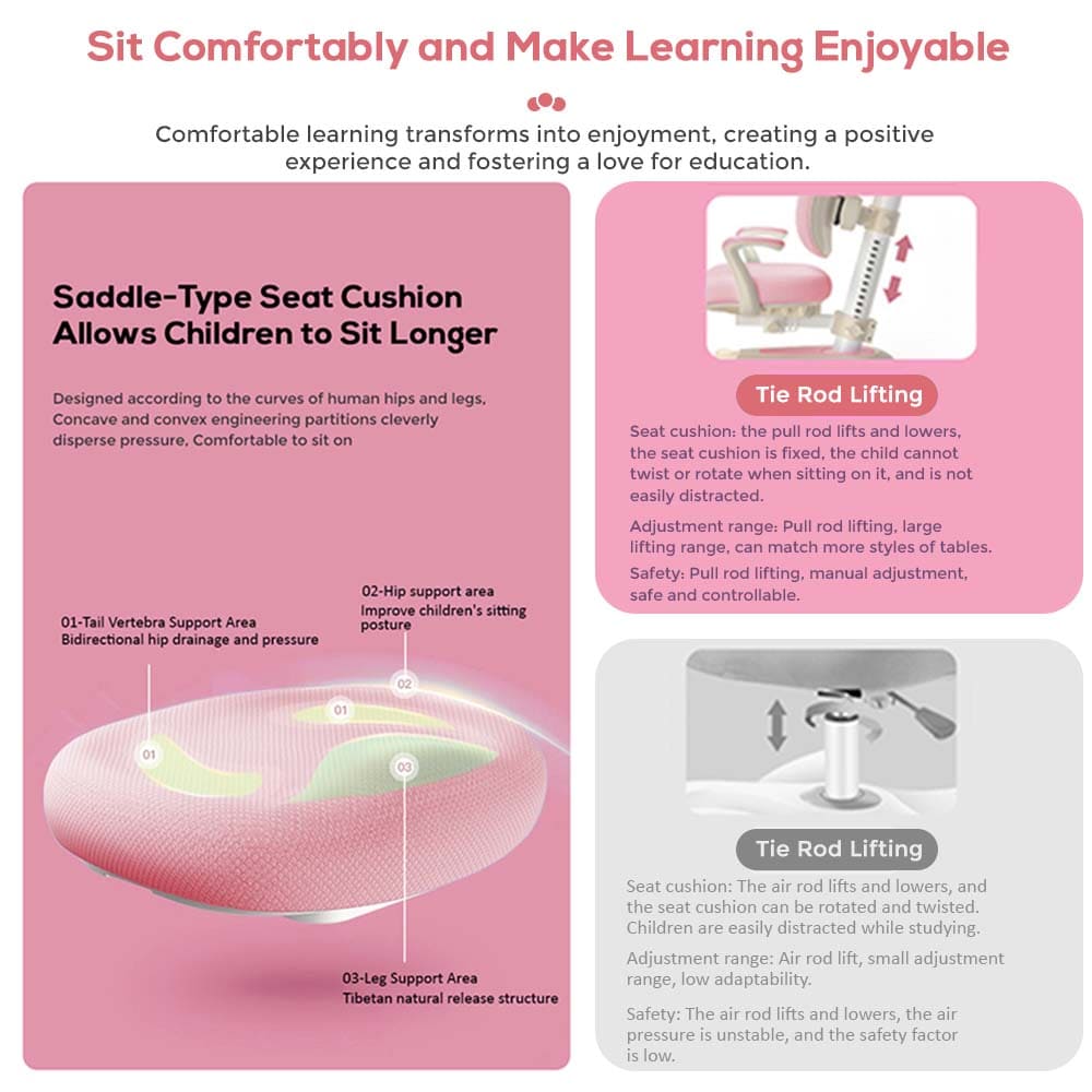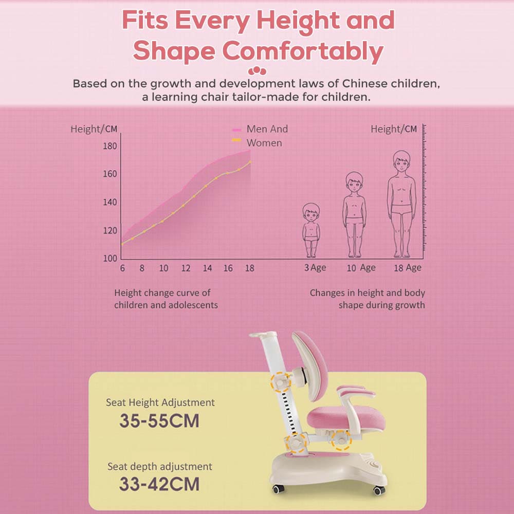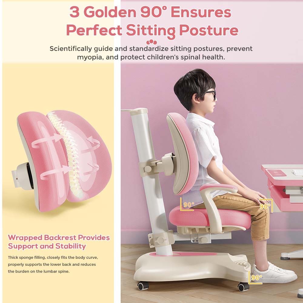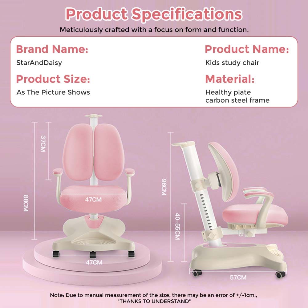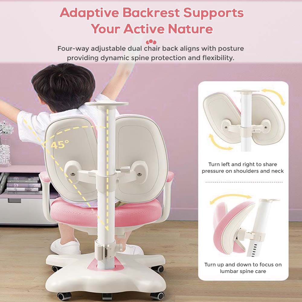StarAndDaisy Kid’s Study Chair With Adjustable Height, Student Chair for Kids Study Table for Proper Posture & Supportive Backrest – 037 Pink