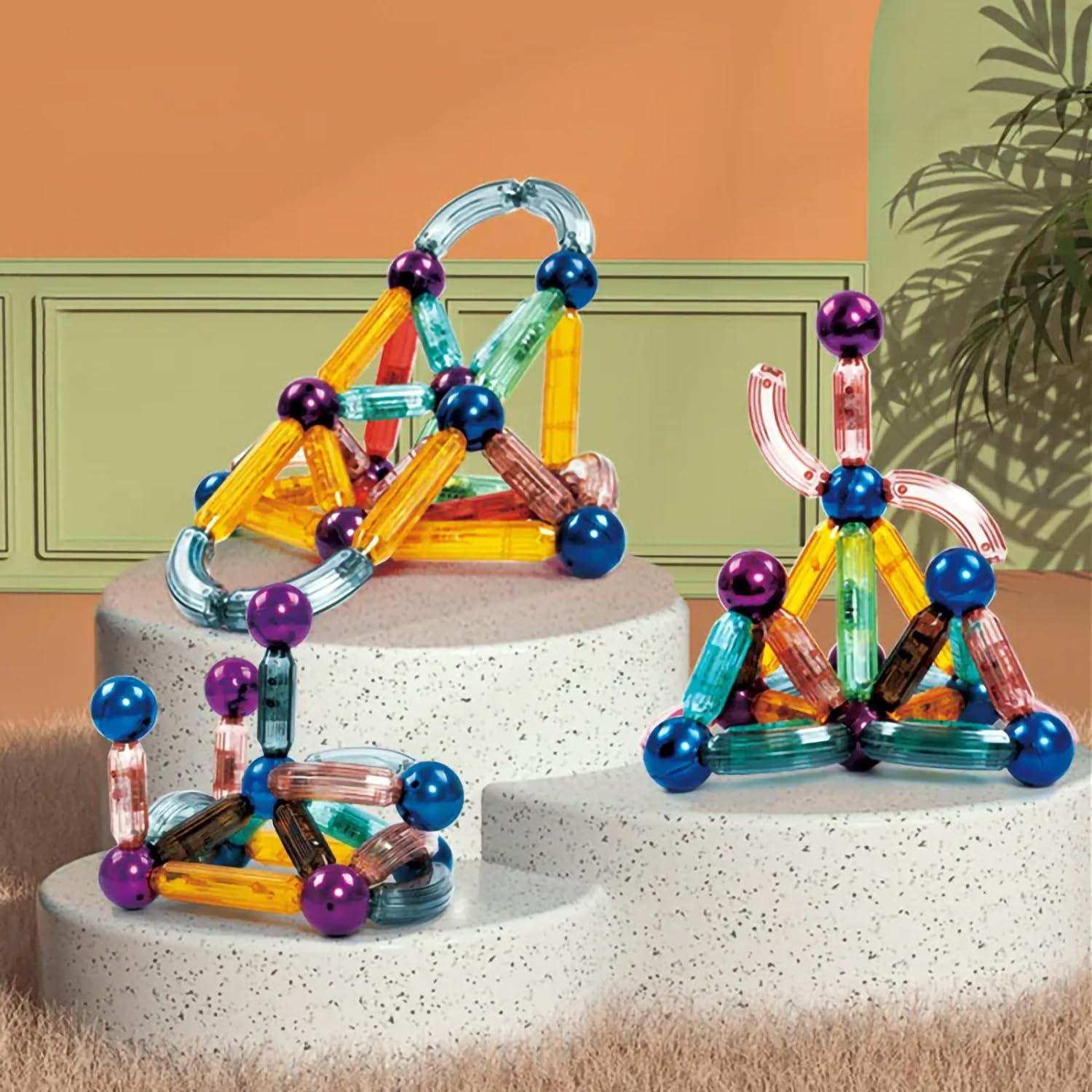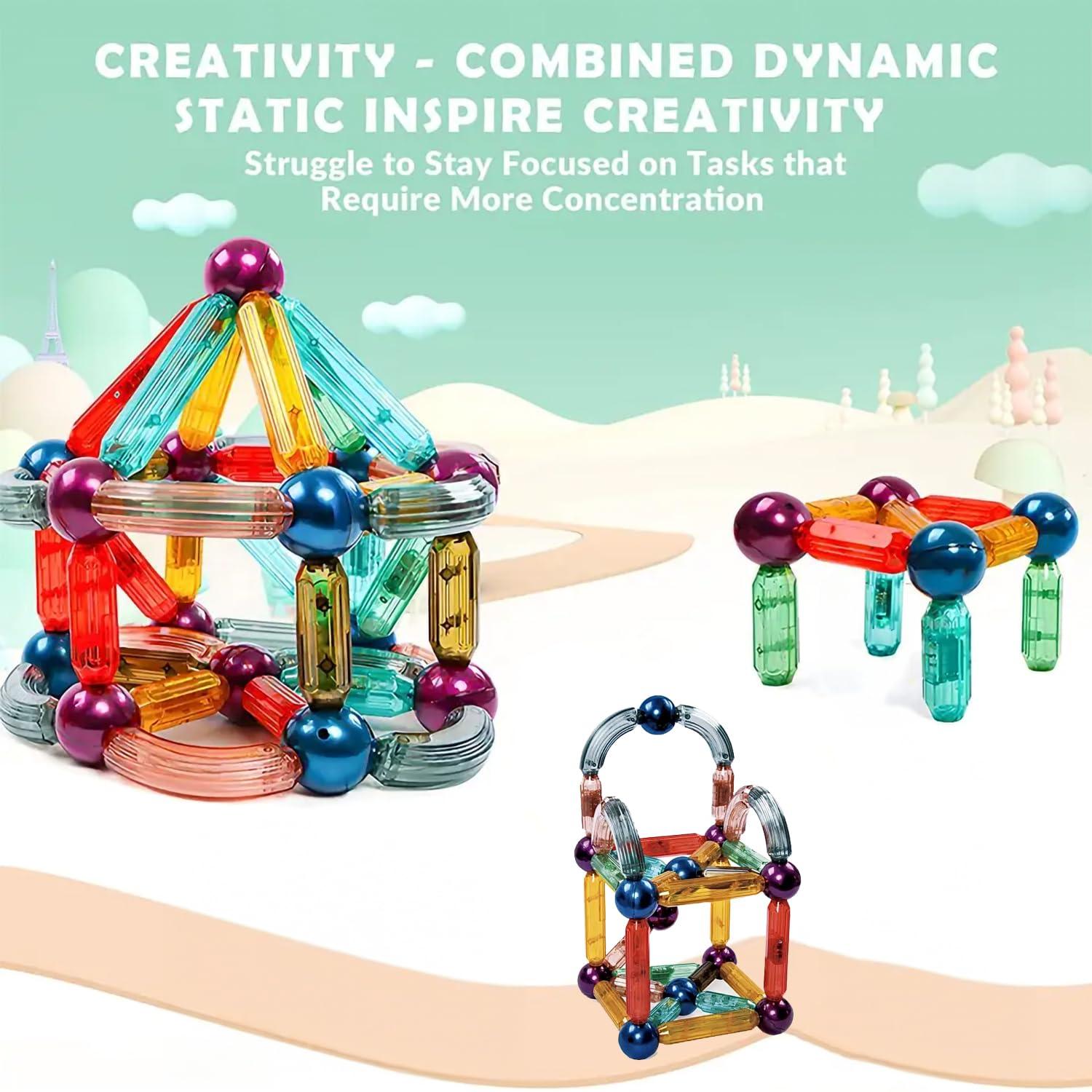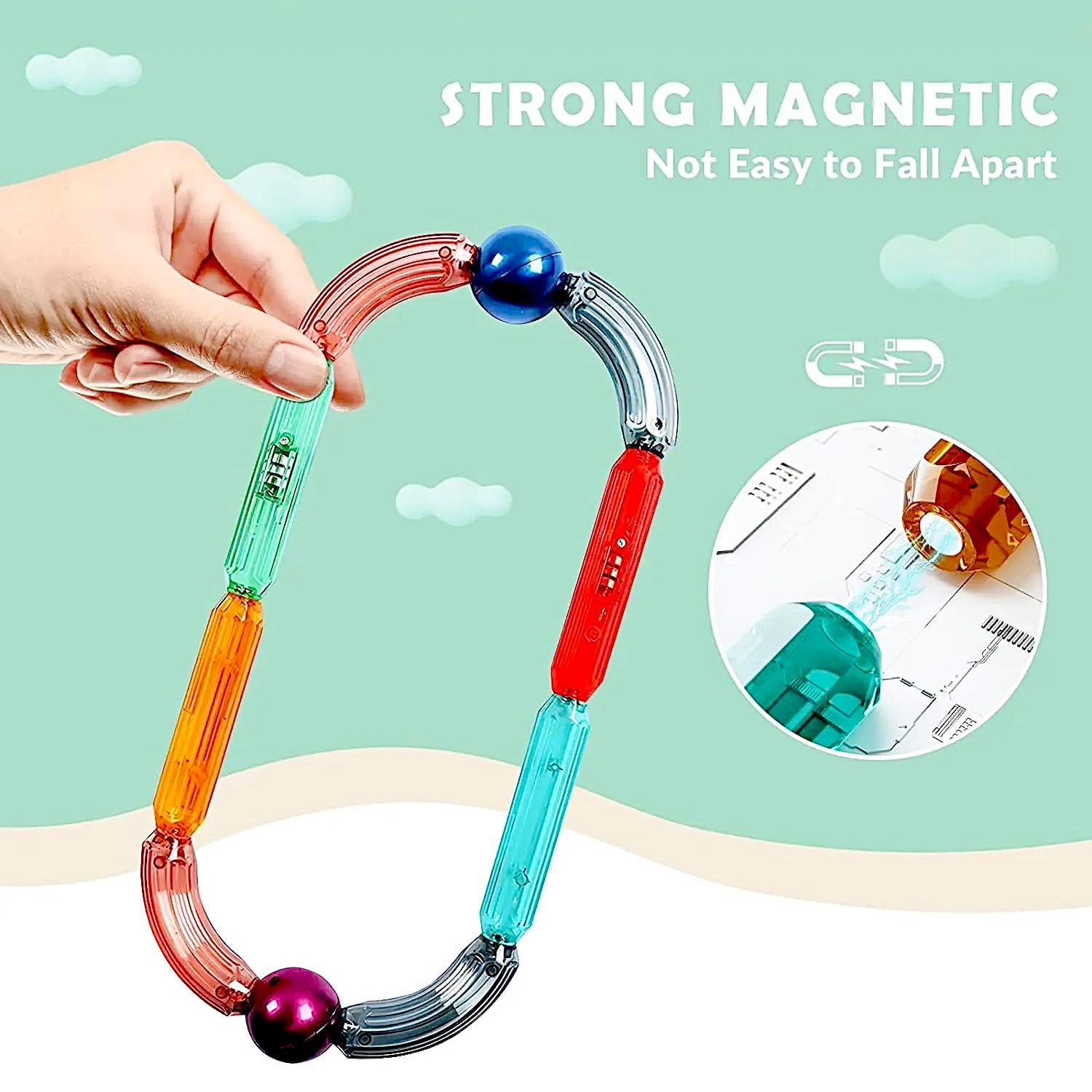Discover the enchanting world of creativity with Kipa Magplay Magnetic Lightup Roundels, a set of 52 pieces that bring imagination to life! Experience the wonder as transparent colorful sticks and balls illuminate with a mesmerizing glow, adding a captivating touch to each creation. The integrated LED light seamlessly enhances the experience, allowing kids to design, build, and explore while bathed in the magical light. With sticks measuring up to 4.72 inches and curved options for added flair, the potential for crafting intricate structures knows no bounds. Ignite your child’s imaginative thinking as they engineer their own designs, nurturing skills like problem-solving, spatial awareness, and critical thinking. This playful learning adventure not only entertains but also fosters an appreciation for science, engineering, and artistic expression. Crafted for safety and durability, each piece ensures a secure and rewarding playtime. Ideal for birthdays, holidays, and any occasion, this LED sticks and balls set makes for a thoughtful and distinctive gift choice, sparking joy and curiosity in every child.