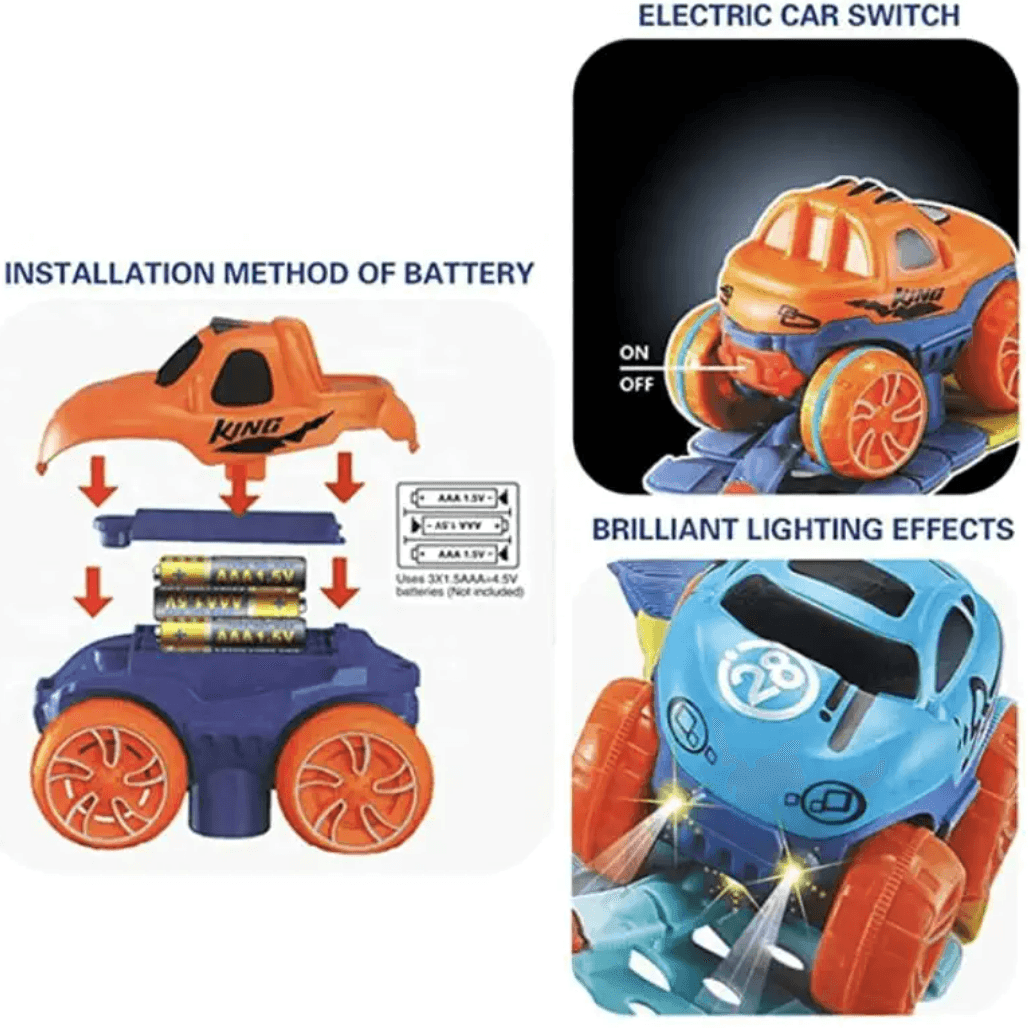 High quality:Made of quality materials with smooth surface, no burrs, which is durable and safe for children. Changeable Track Car bend and Drive on the Wall, Ceiling, and ground as you`ve never seen before.