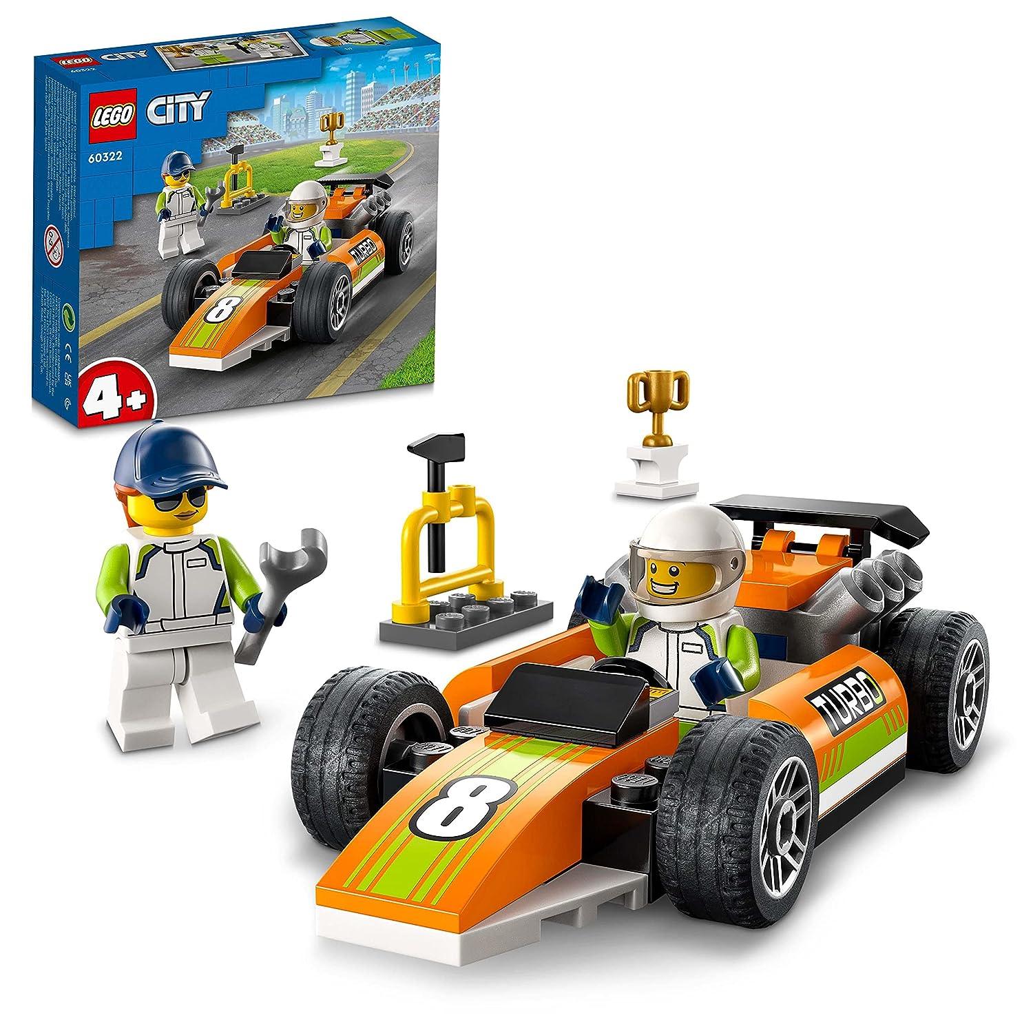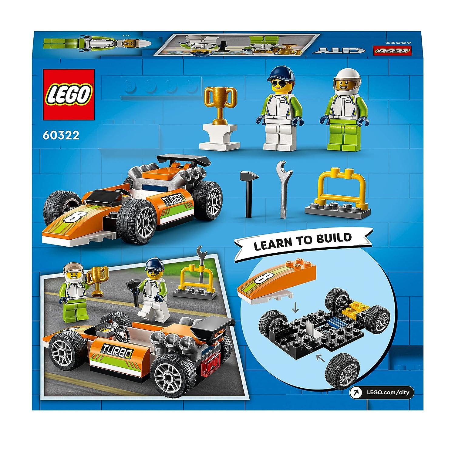 Accelerate the excitement of imaginative play with the LEGO City Race Car (60322) toy playset, designed to thrill kids aged 4 and up as they dive into the world of fast-paced racing. Offering an engaging entry into the LEGO City Great Vehicles universe, this set comes complete with all the essentials to craft a thrilling toy Race Car, along with a coveted winner’s trophy, essential tools, and dynamic driver and mechanic minifigures. Bursting with F1-style detailing, budding racers can delve into the construction process, before sliding the driver into the driver’s seat for endless hours of imaginative racing fun. A superb choice for birthdays, holidays, or any occasion that calls for a delightful surprise, this LEGO City Great Vehicles race car building set caters to the adventurous spirit of kids aged 4 and up. Sized for play on the go, the assembled race car stands over 1 inch in height, 4 inches in length, and 2 inches in width, making it a versatile companion for racing adventures wherever kids choose to explore.