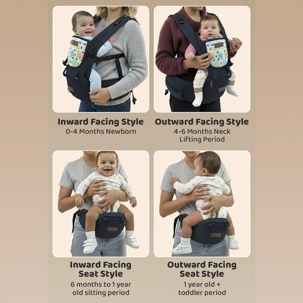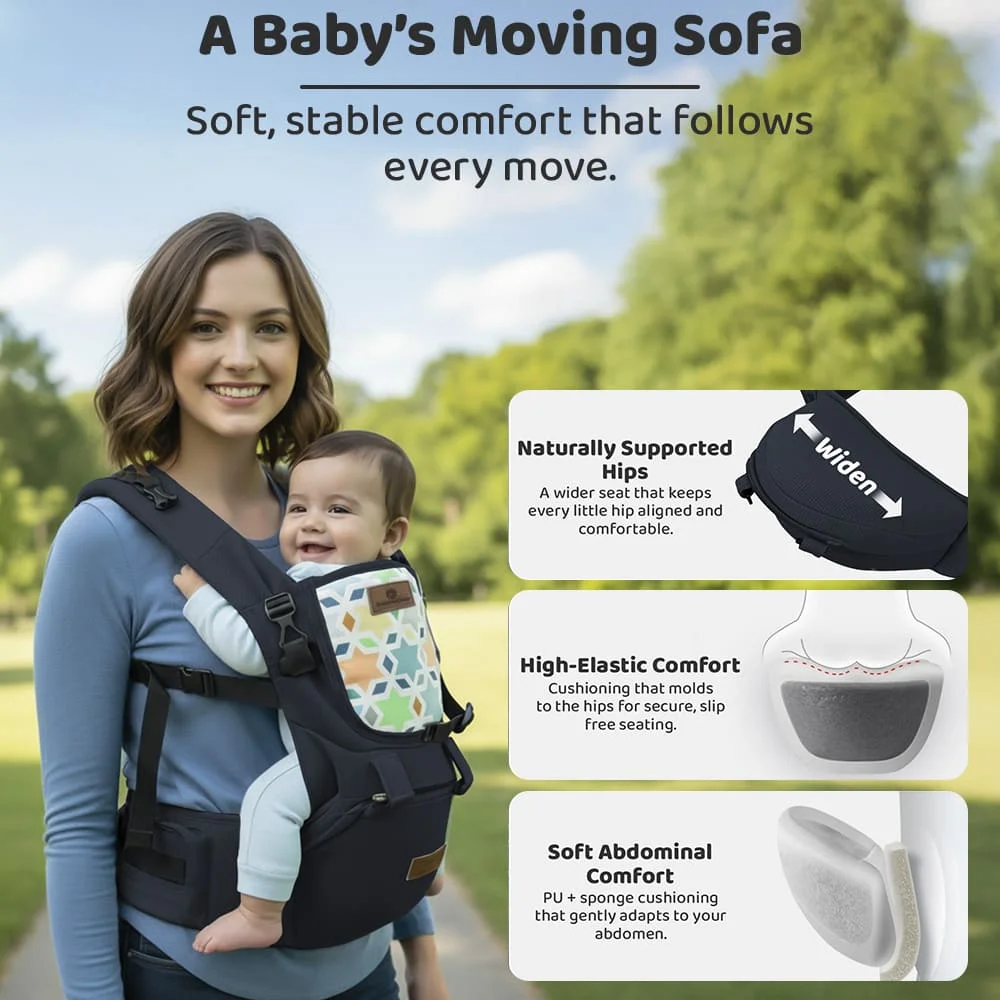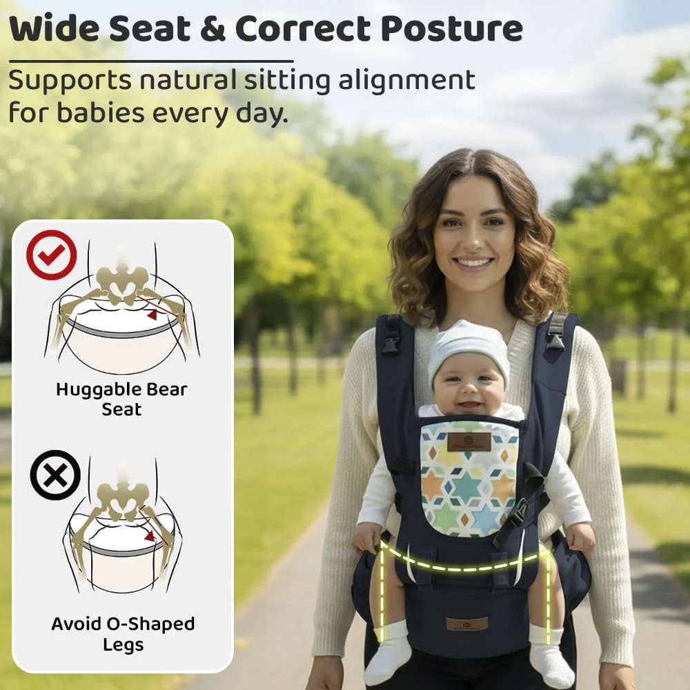 StarAndDaisy Little Hug 9 in 1 Baby Carrier with Adjustable Waist Belt, Infant Carrier with Hip Seat for 0-36 Months – Blue
