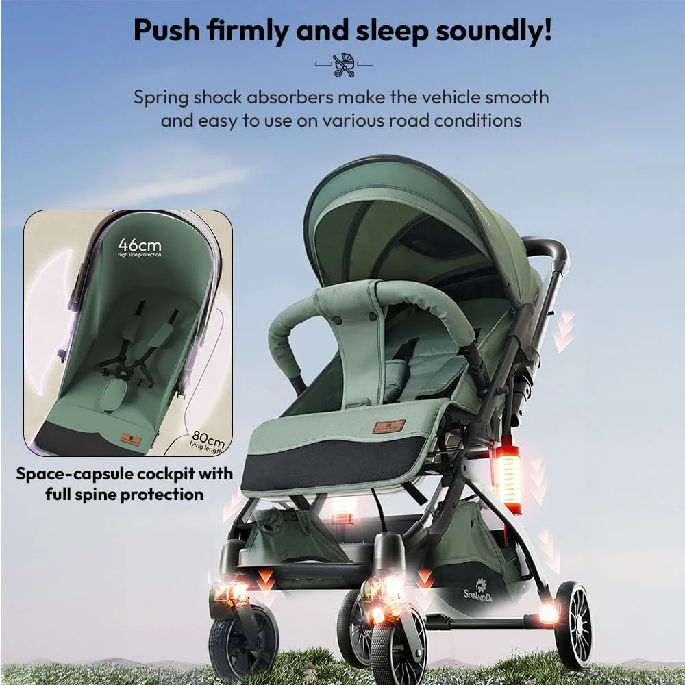 StarAndDaisy Lunex Baby Stroller, Reclining Seat, Adjustable Footrest, Large Canopy & Safety Harness – Black
