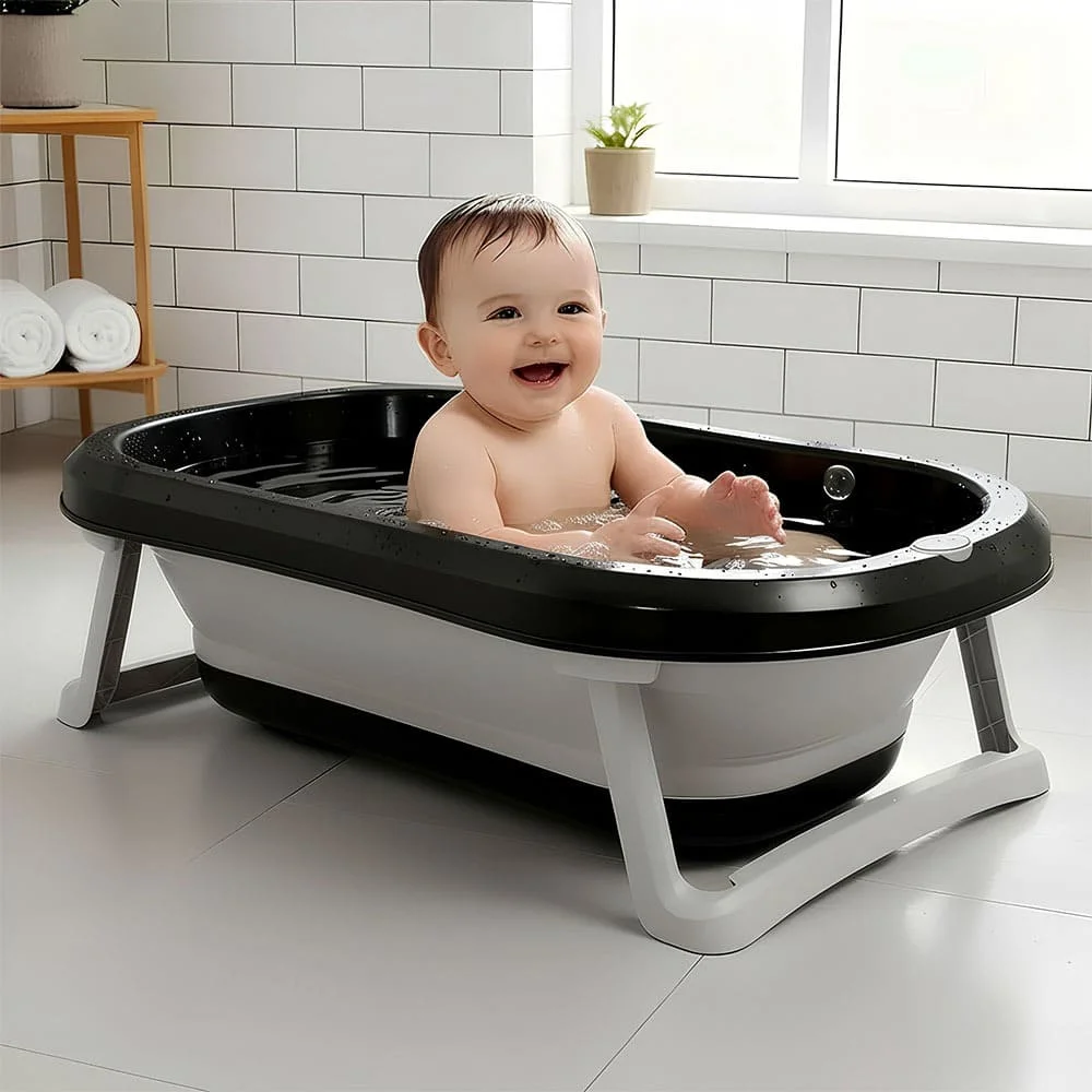 StarAndDaisy Luxe Baby Bath Tub, Foldable Infant Bathtub and Anti-Slip Support, Quick Drain System – Black