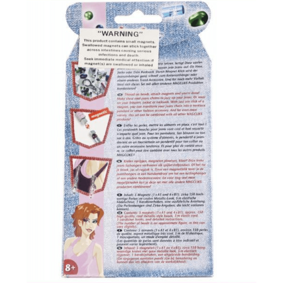 Introducing the Magcliks Magnetic Jeans Jangler – a revolutionary way to accessorize with ease! Effortlessly thread on the beads, attach the magnets, and watch your jeans transform into stylish fashion statements. Elevate your denim game by creating captivating jeans chains that also double as chic necklace pendants or trendy additions to your trousers, jacket, or rucksack. Designed for versatility, Magcliks offers an instant makeover with a simple magnetic click. The perfect gift for girls aged 8 to 12, it’s ideal for birthdays, dress-up rings, pretend play, tea parties, and treasure boxes. Unleash your creativity and embrace the magnetic allure of Magcliks to redefine your style effortlessly.