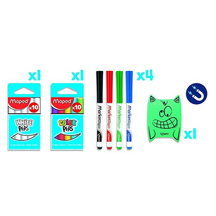 This creative kit includes a set of markers and erasers. The markers provide vibrant and bold colors, perfect for any project, while the erasers ensure a clean and easy-to-erase surface.