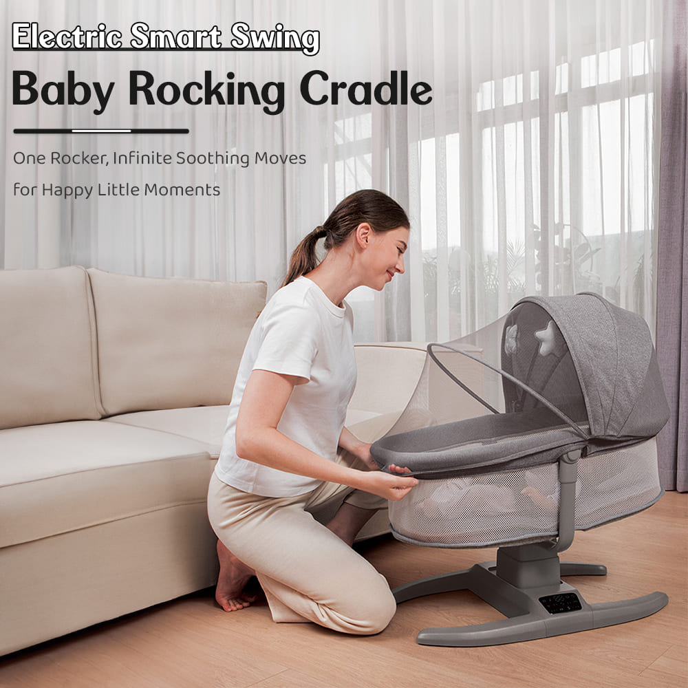 StarAndDaisy x Mastela Automatic Swing Cradle for Baby with Smart LED Touch Panel, Electric Baby Rocker with Multi-Mode Adjustment & Mosquito Net – Grey