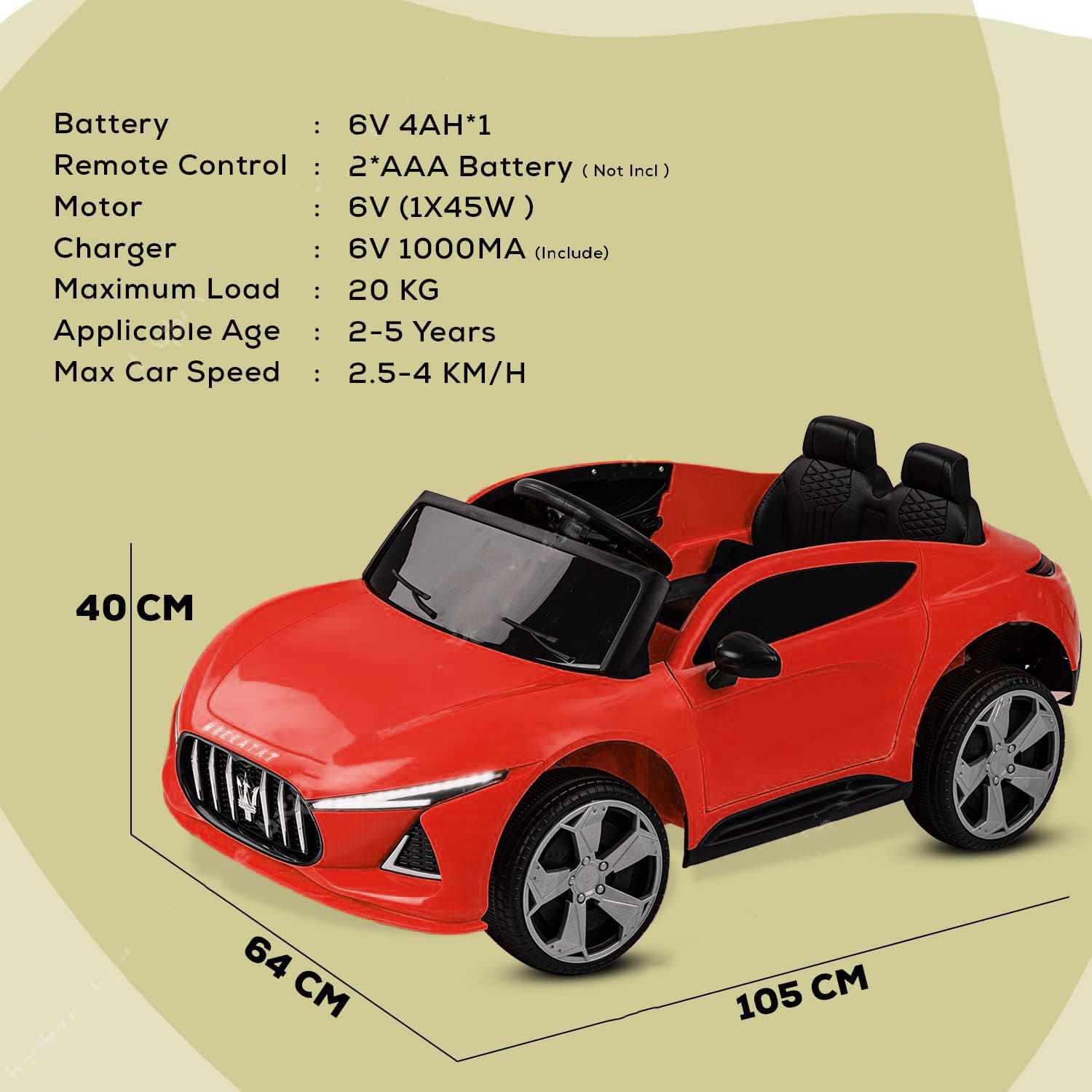 - Dimensions of the Car- L 105 x B 65 x H 45 cm