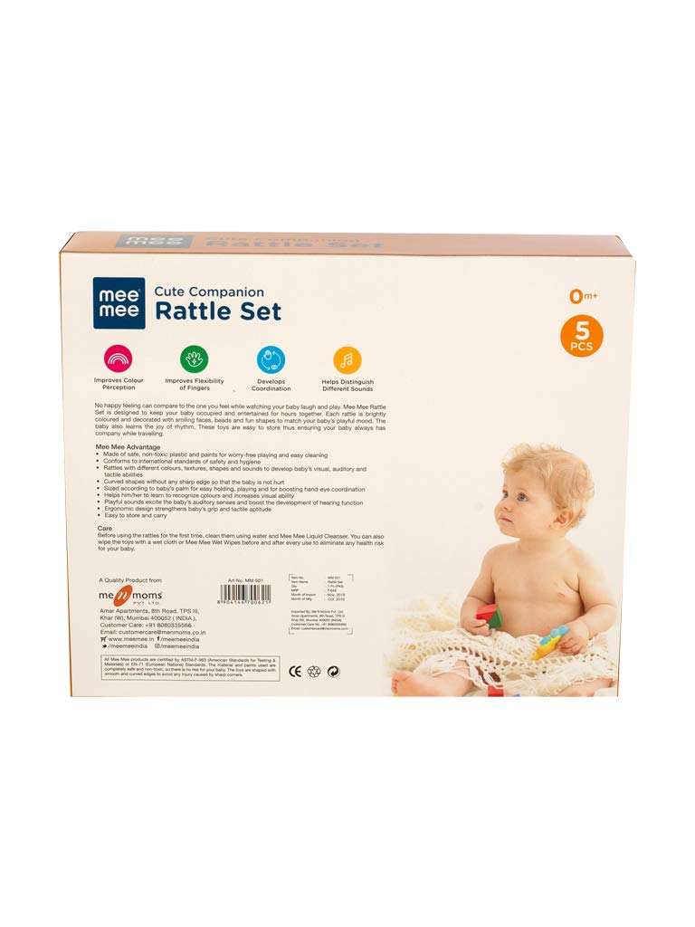 Entertain your little one with this delightful Mee Mee Rattle Set! StarAndDaisy has created a set of five unique, colorful, and safe rattles for your baby that is sure to bring out plenty of smiles. With vivid color schemes and fun designs, your baby won’t be able to contain their excitement when playing with these five different toys. Whether you have a son or daughter, they’re sure to love the variety and enjoy learning new colors while having fun at the same time! 100% safety tested and approved, buy this cute set today and you can count on quality throughout it all. Trust us – your baby will thank you for it!