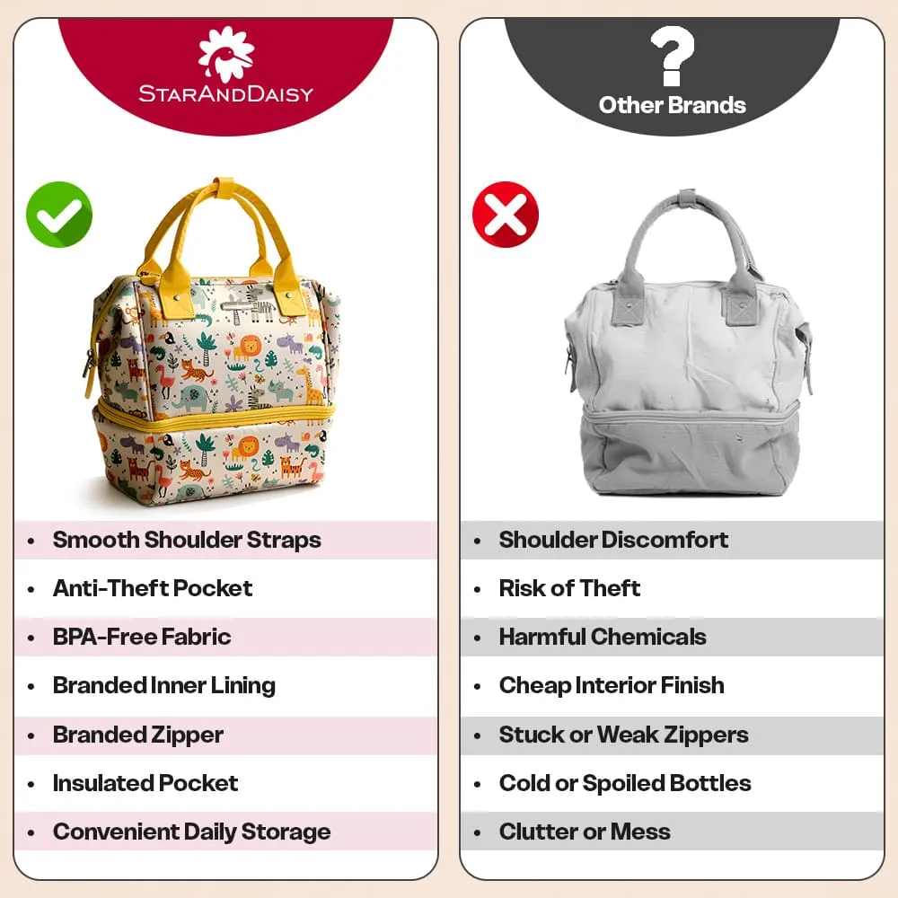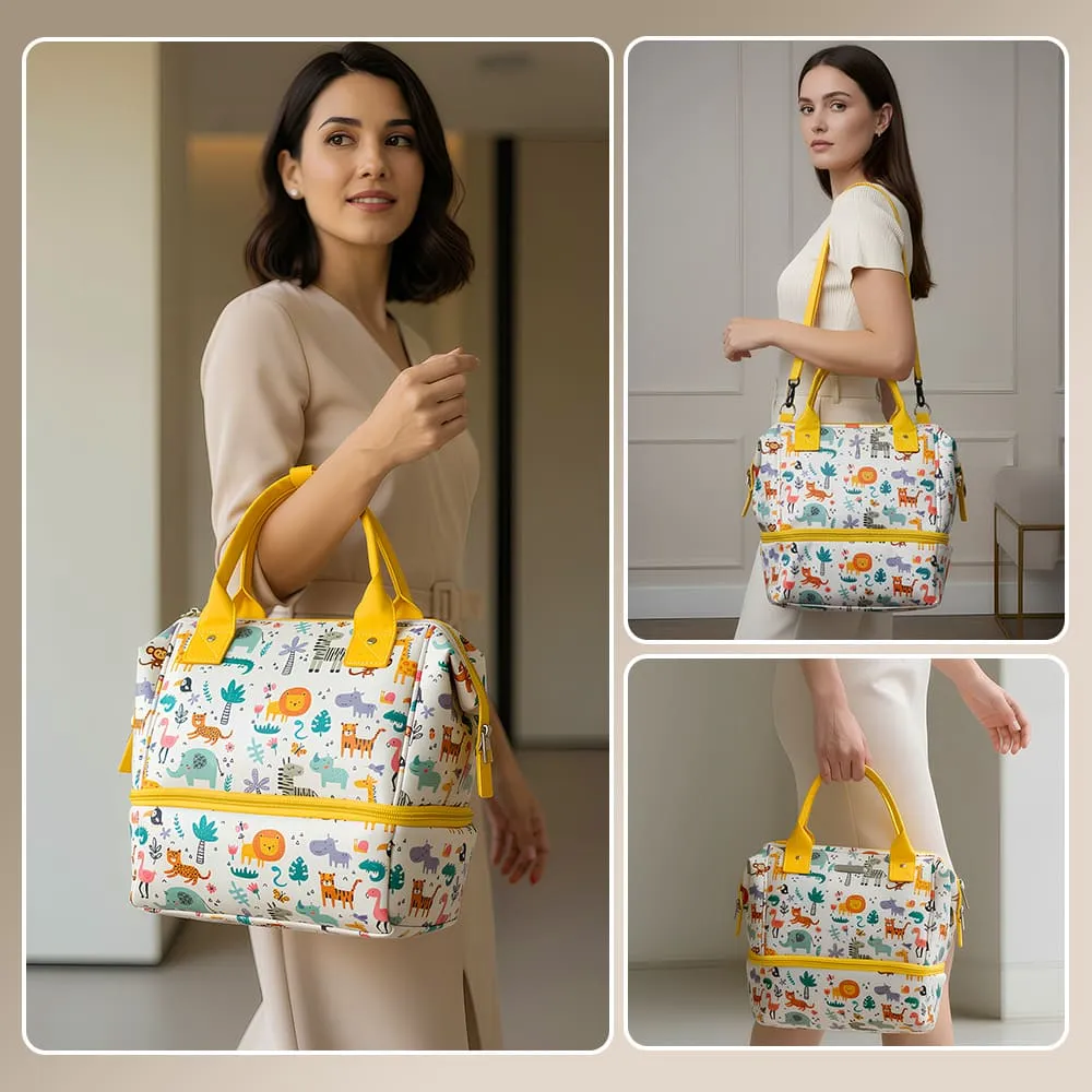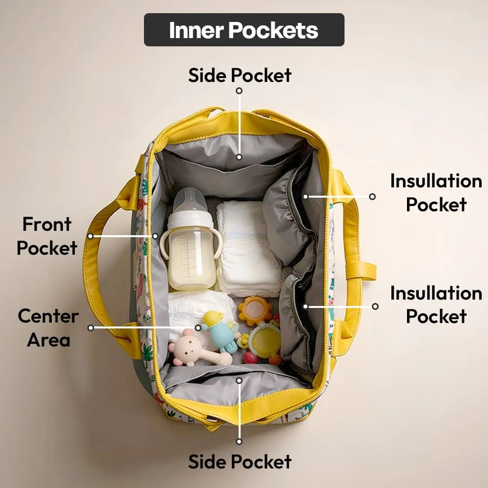 StarAndDaisy Mini Travel Diaper Bag with Insulated Pocket, Diaper Tote Bag with Convertible Sling Bags & Multiple Compartment – Giraffe Print