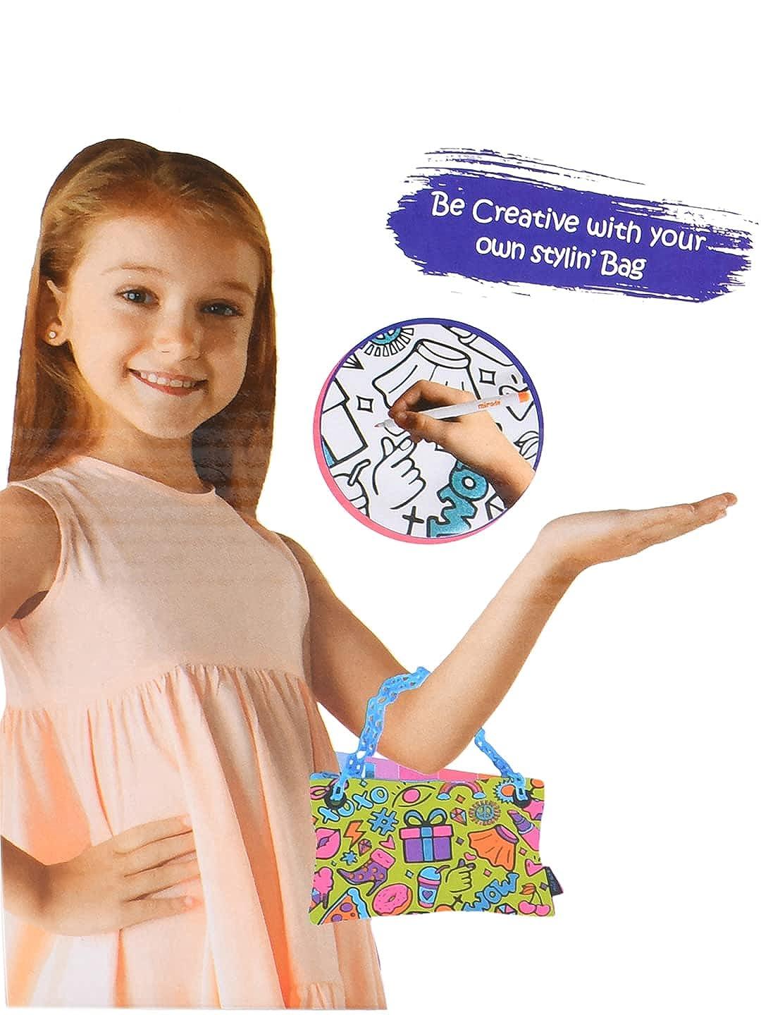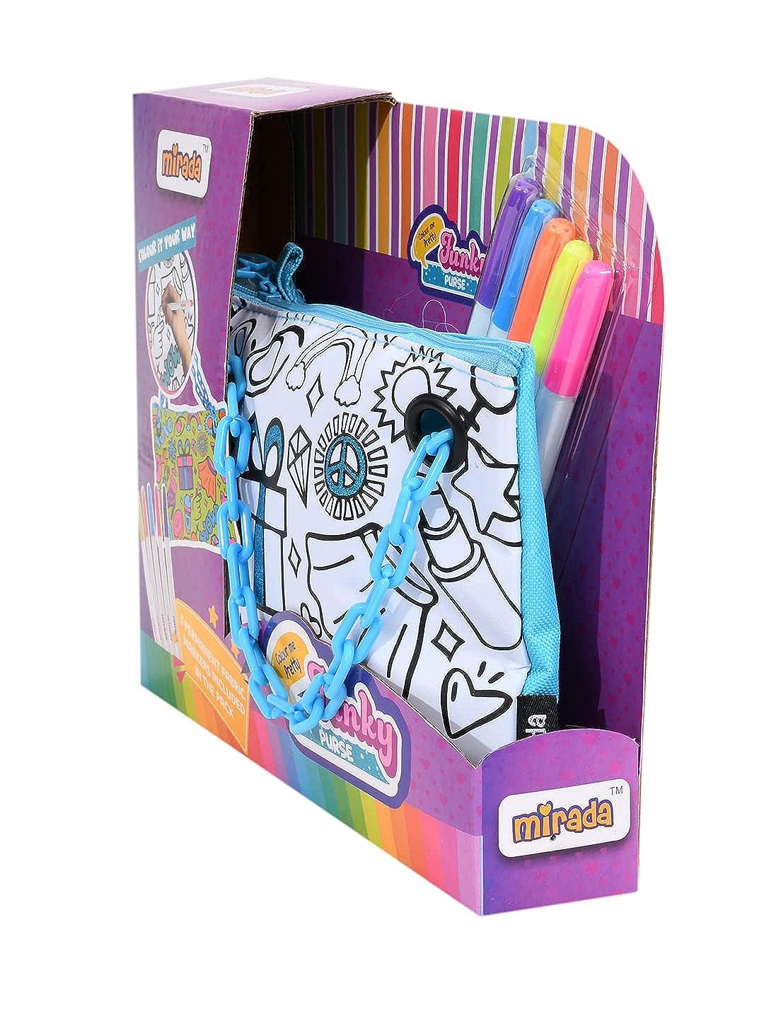 Introducing the Mirada Funky Purse – a creative and stylish accessory for tweens. This kit includes a Color-Your-Own Sling Purse (23.5 x 0.5 x 16 cm) and 5 vibrant Neon Markers (Purple, Blue, Orange, Pink, Yellow). With its trendy plastic chain, this purse is a must-have for fashion-forward tweens. Unleash your creativity by coloring the purse and make it uniquely yours. The versatile 5-color design ensures that your artwork complements any outfit. Safety is our priority – Mirada has a proven track record of providing kid-tested and safe products, meeting or exceeding Indian safety standards. Trust in Mirada for top-quality and meticulously crafted products that combine creativity and safety seamlessly.