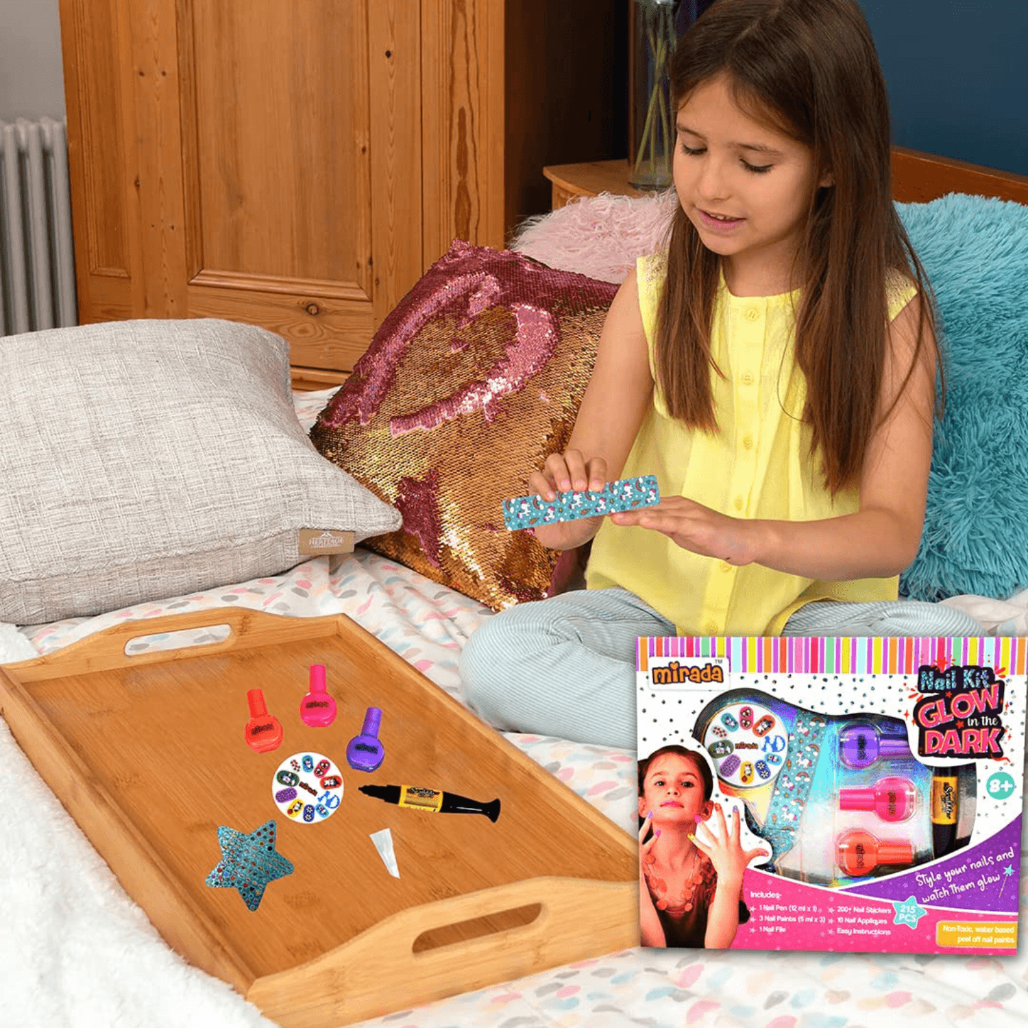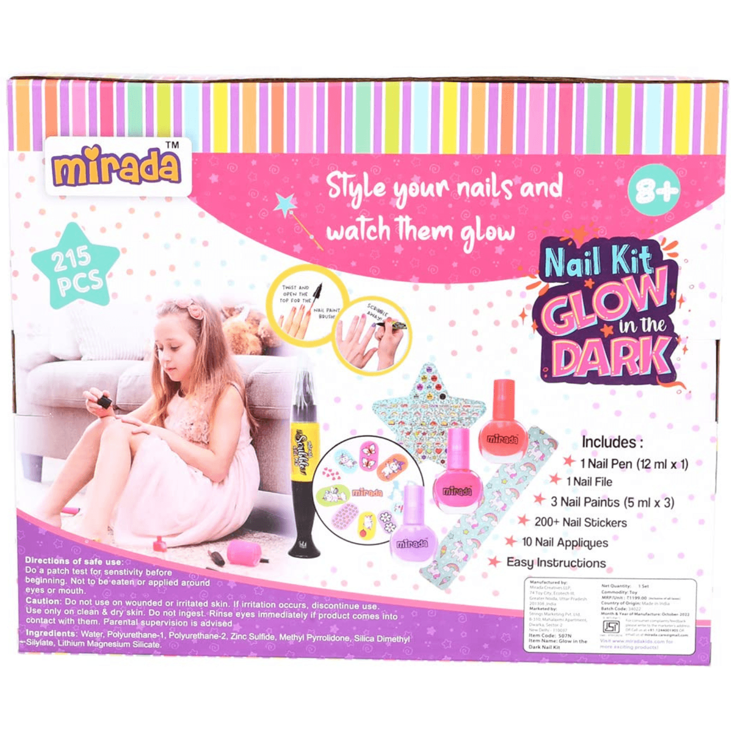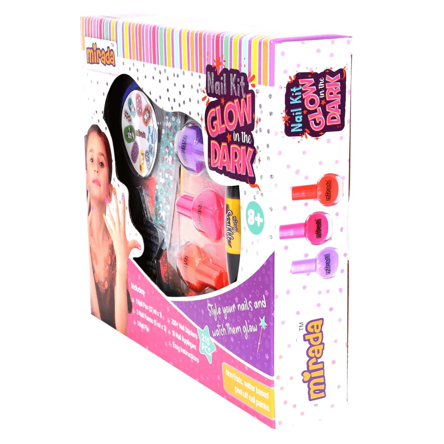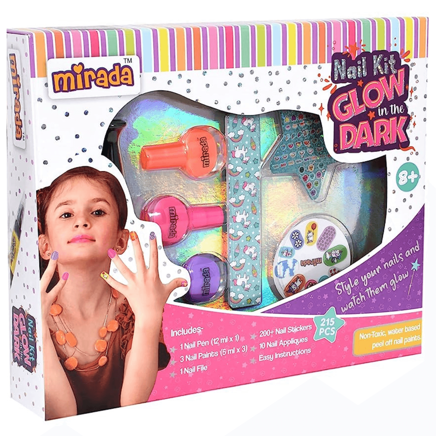 Mirada Nail Art Kit for Kids – Ultimate Glow in the Dark Nail Party for Girls, Paint your Nails in Cool Colors, Pens, Nail Applique Stickers, Nail Art Kit For Girls & Kids Age 8+