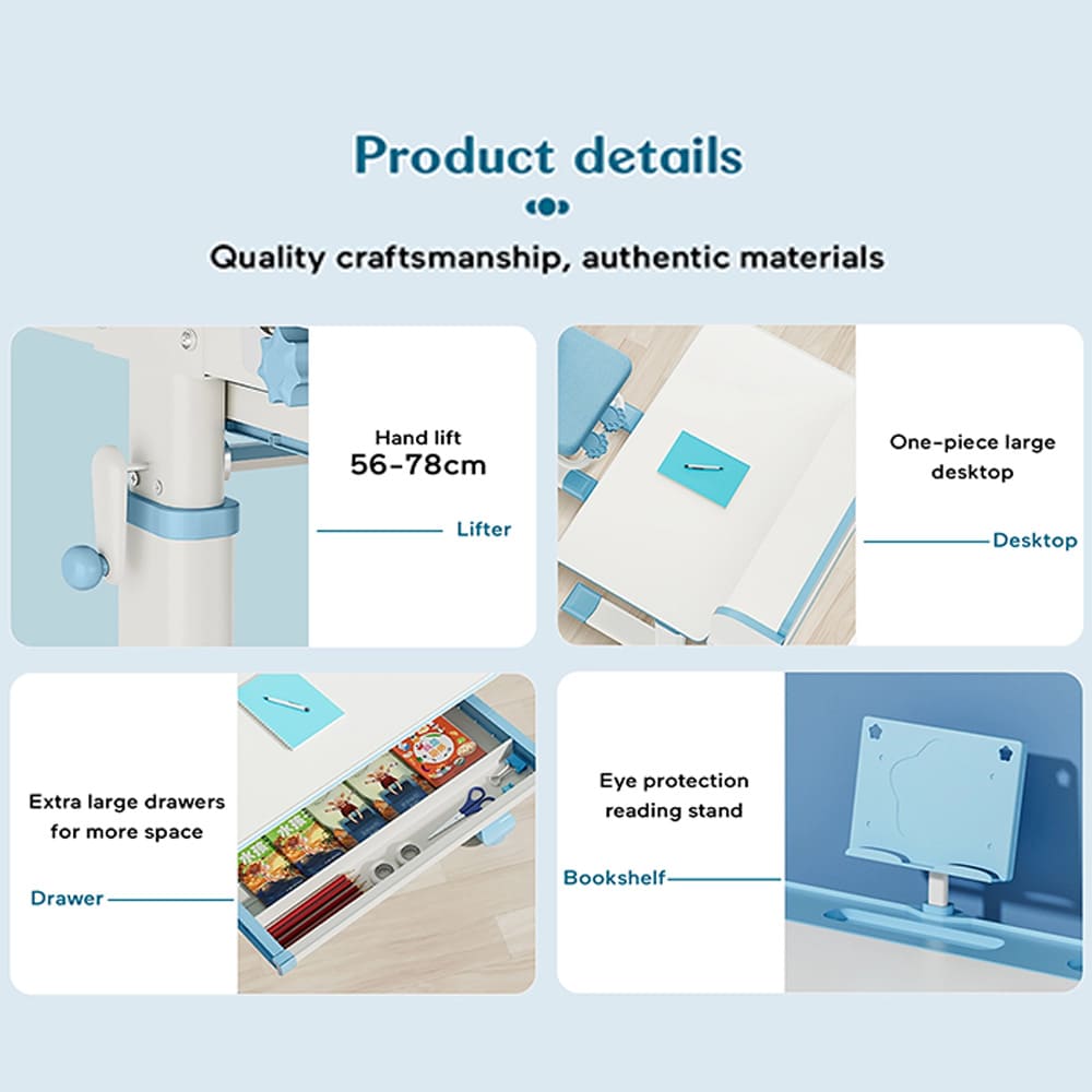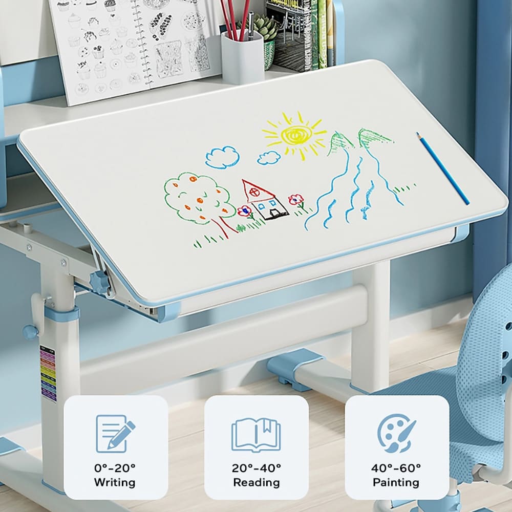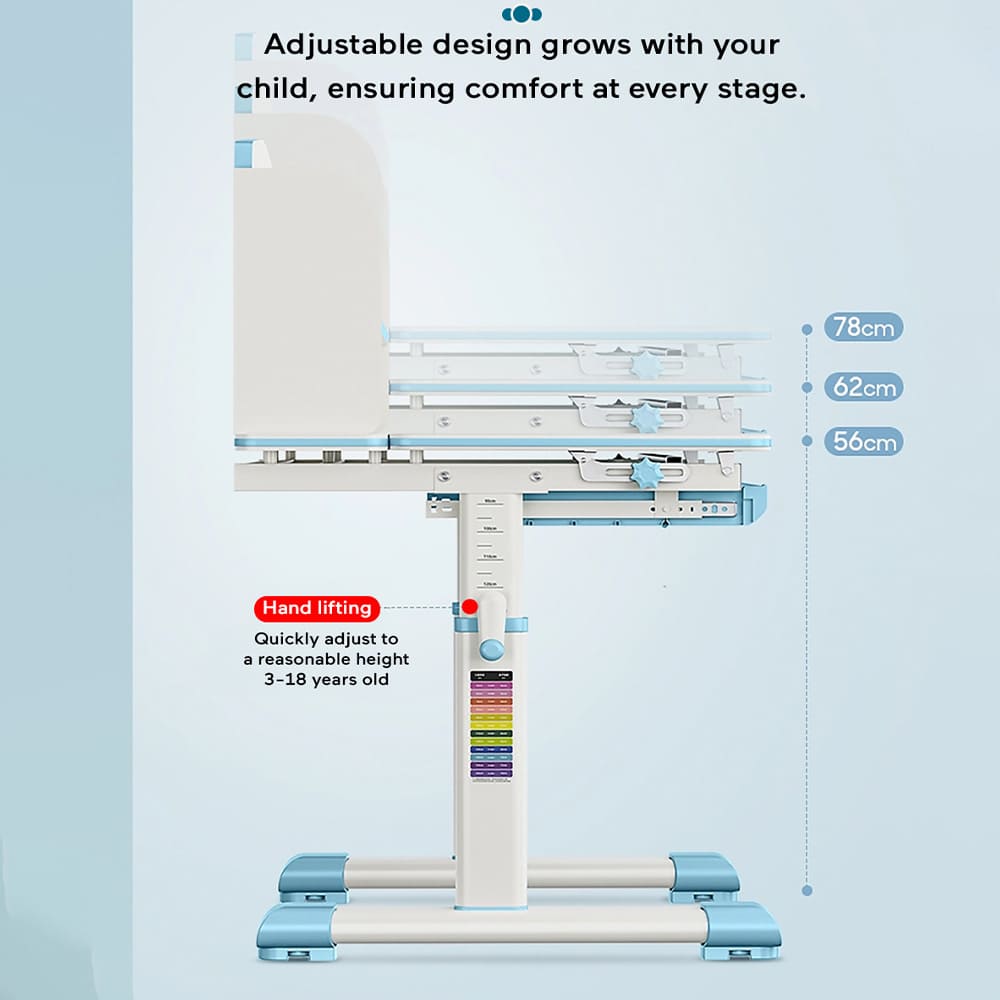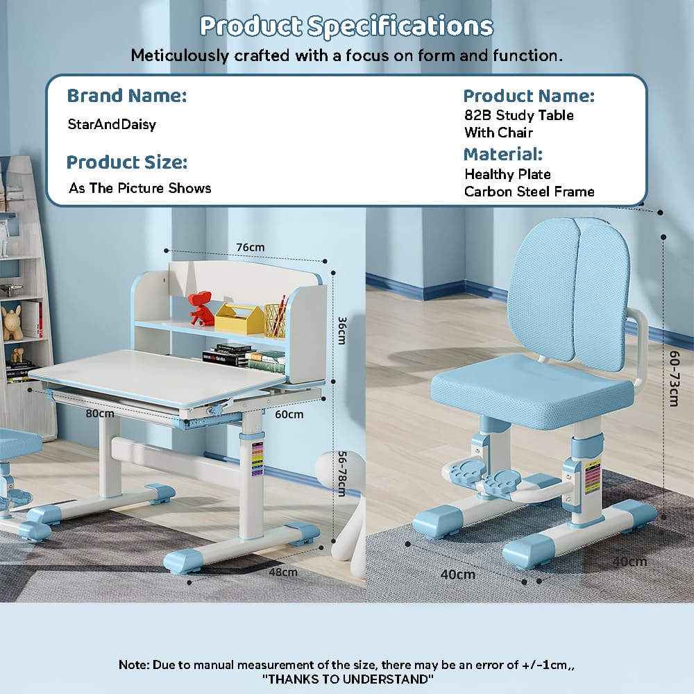 StarAndDaisy Multifunctional Study Table Chair Set with Adjustable Height, Smart Storage, Flexible Desk, and Adjustable Design – 82B (Blue)