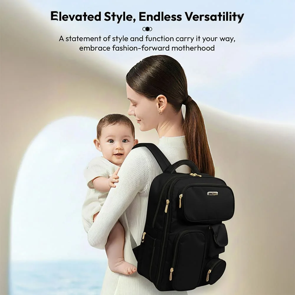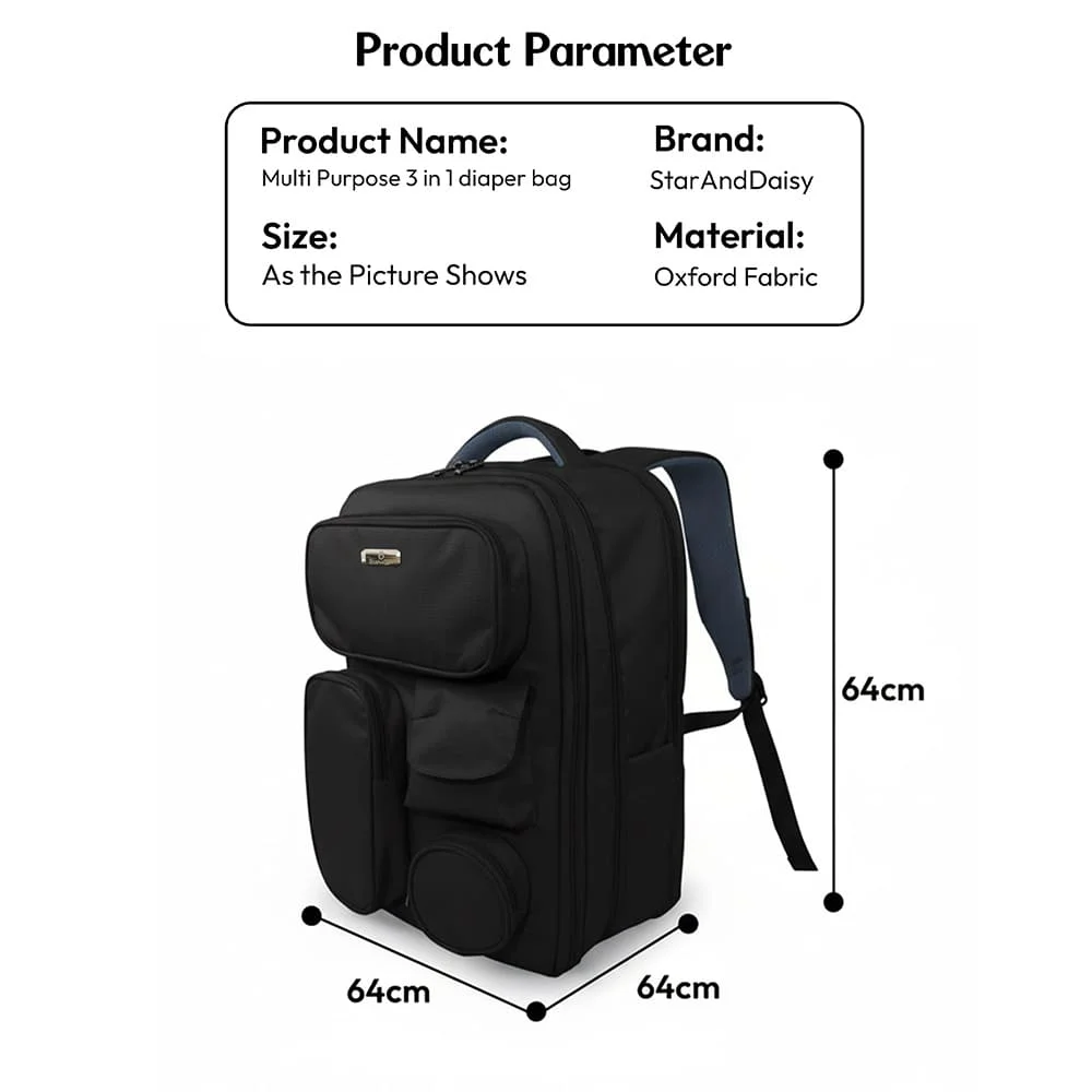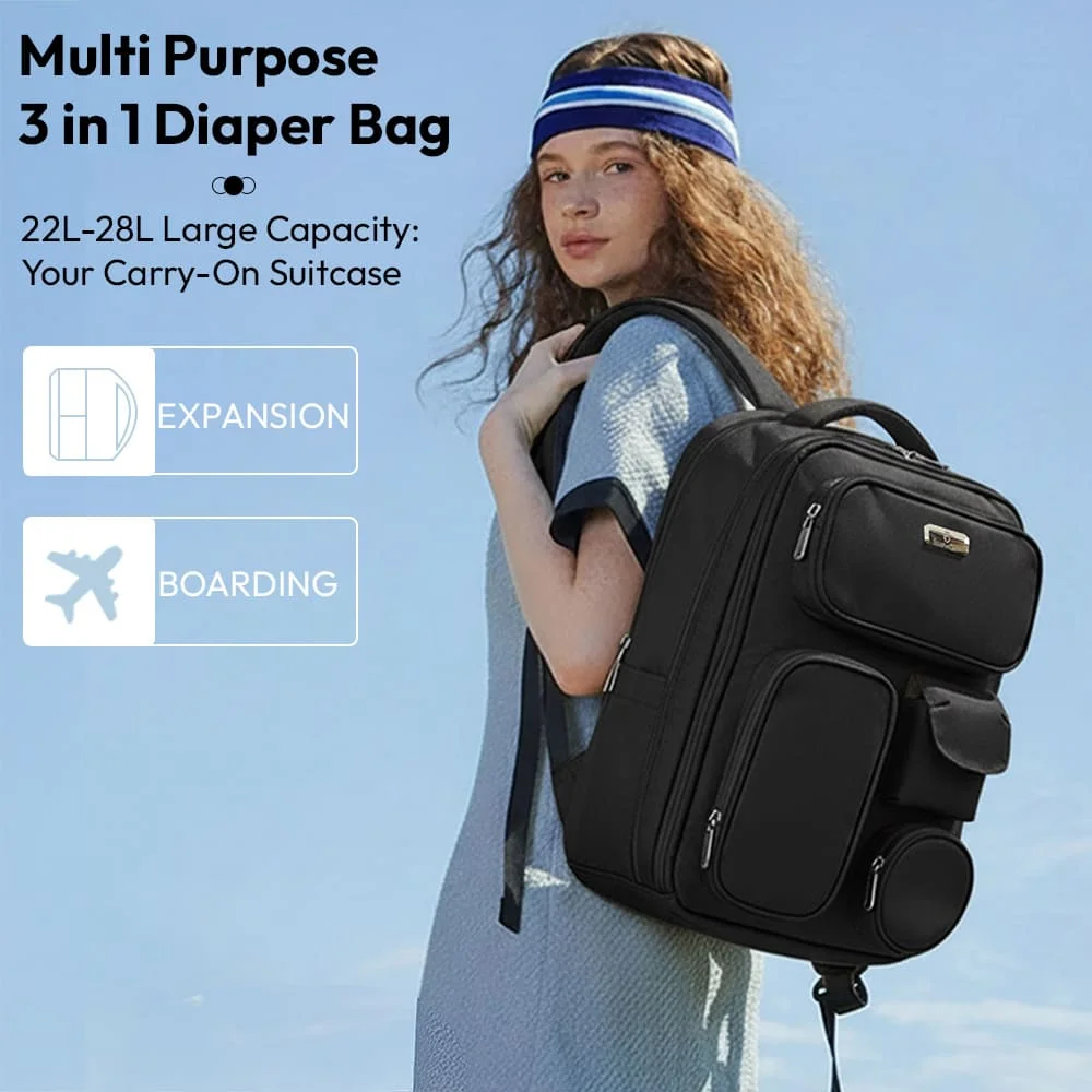 StarAndDaisy Multipurpose 3 in 1 Diaper Bag for Mom, Expandable 22L-28L, Travel, Waterproof and Laptop Storage for Parents – Black