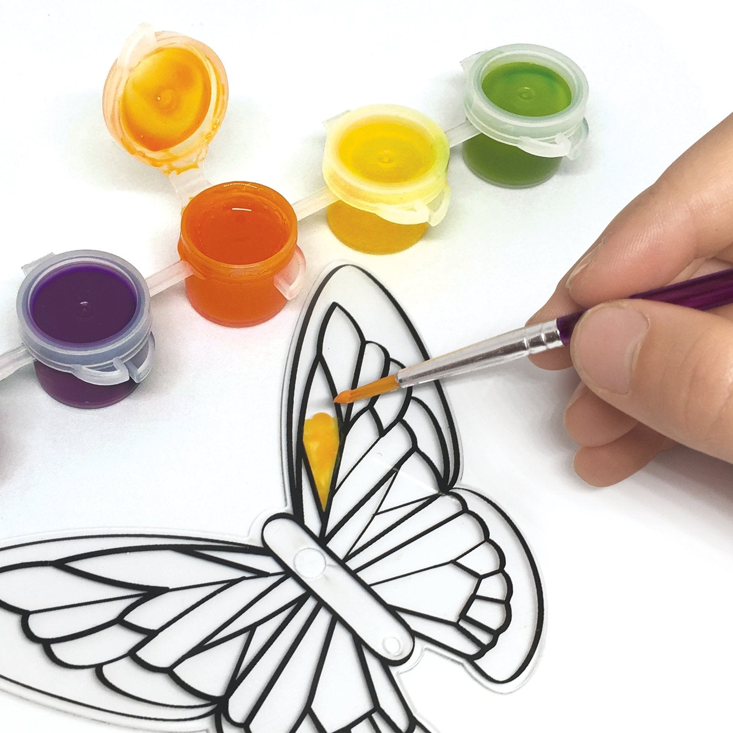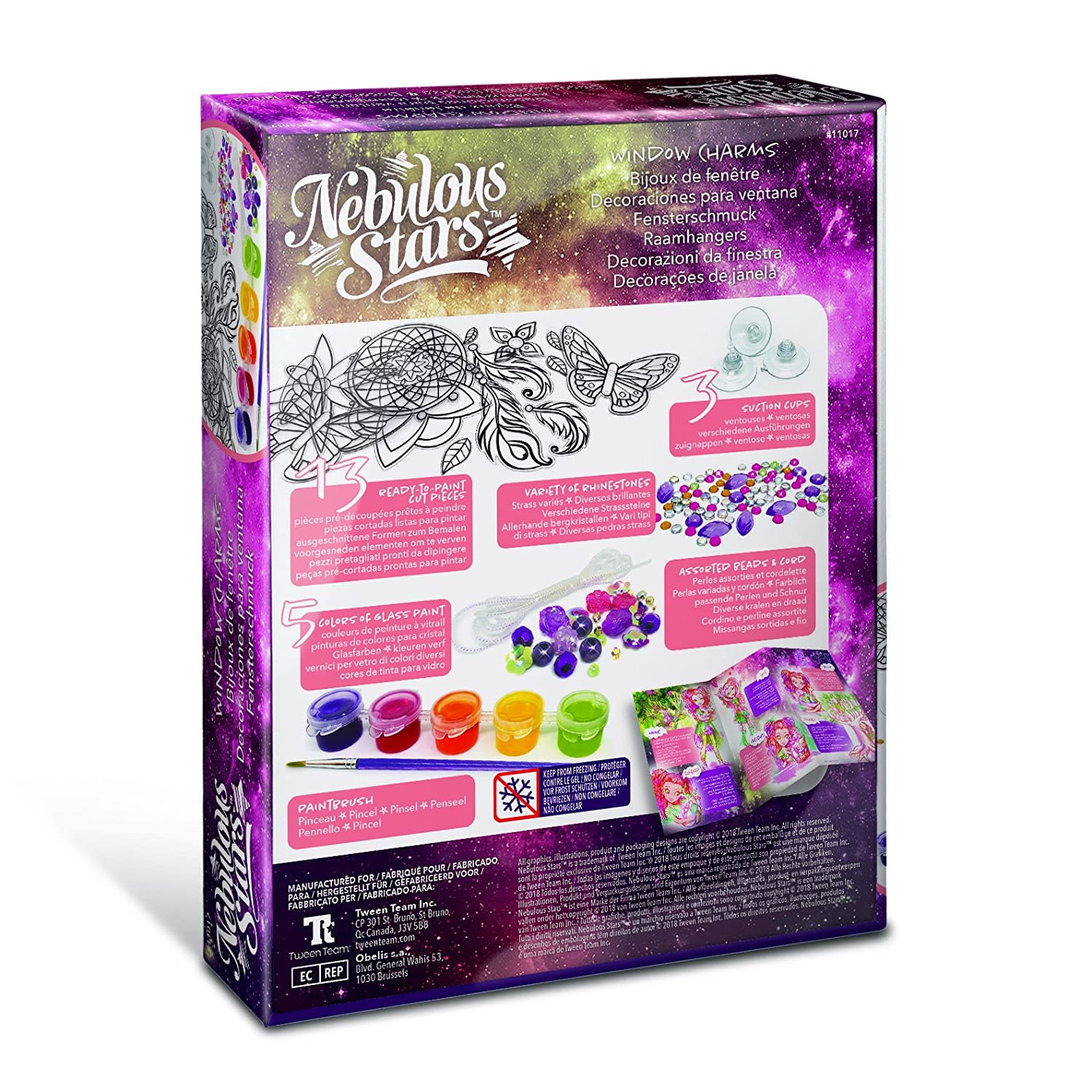 13 ready-to-paint cut pieces, 5 color paint, 3 suctions cups, assorted beads and cords, variety of rhinestones. Have hours of creativity and fun. Let your imagination run wild. For ages 7+