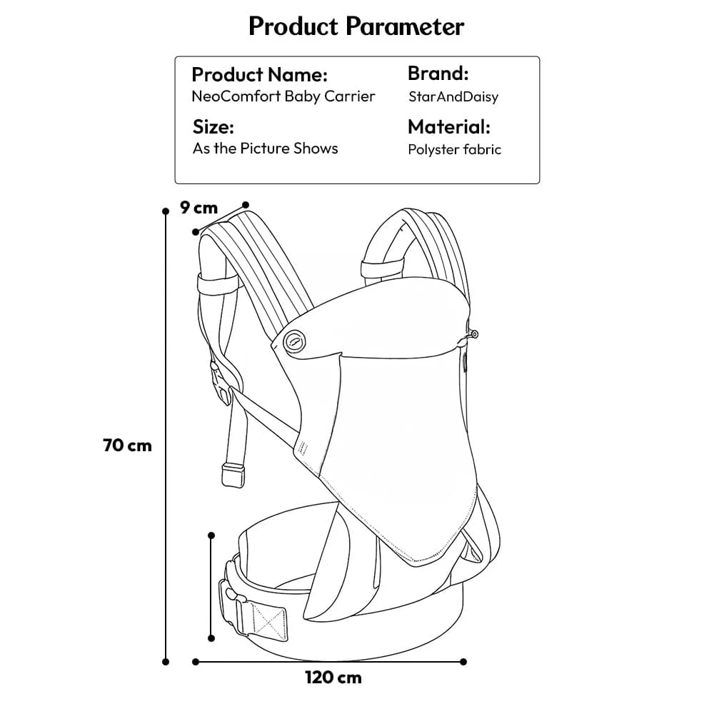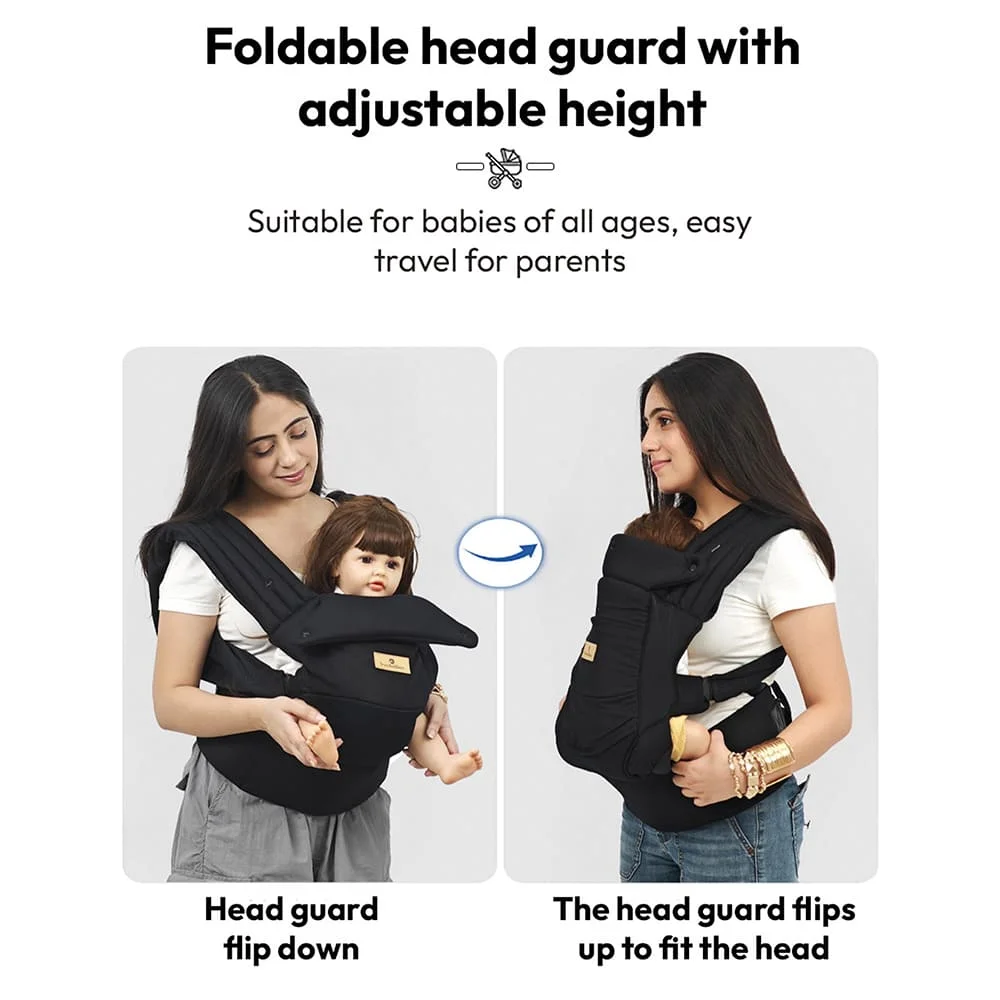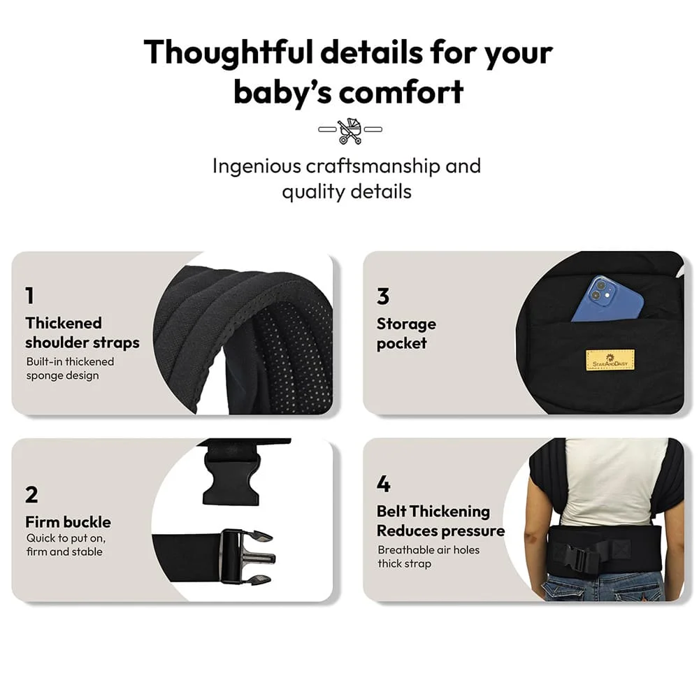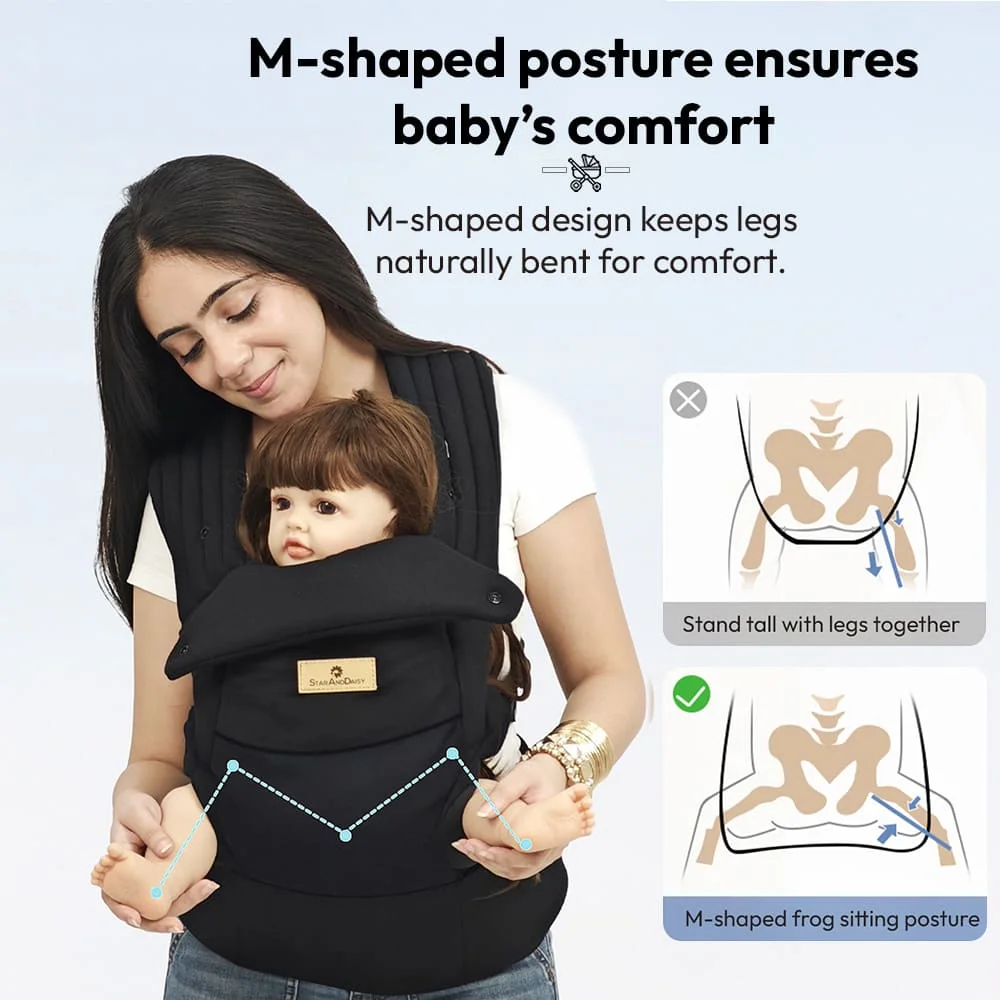 StarAndDaisy Neo Comfort Baby Carrier with M-Shaped Seat, Adjustable Foldable Head Guard – Black