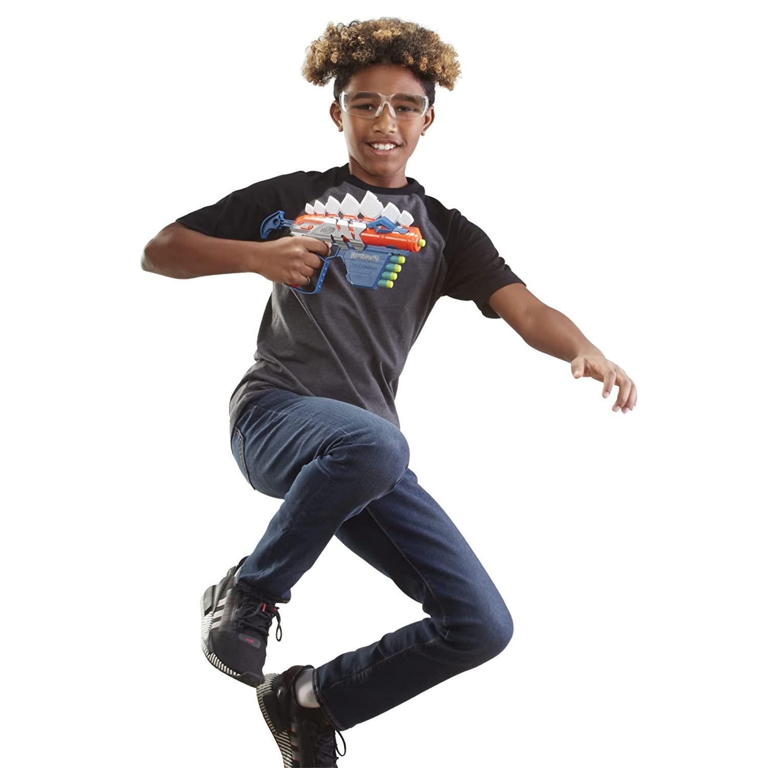 With its easy-to-use pump-action mechanism, you can fire darts up to 90 feet away. The Stegosmash Dart Blaster is a fun and exciting toy for kids and adults who love Nerf and dinosaurs alike!