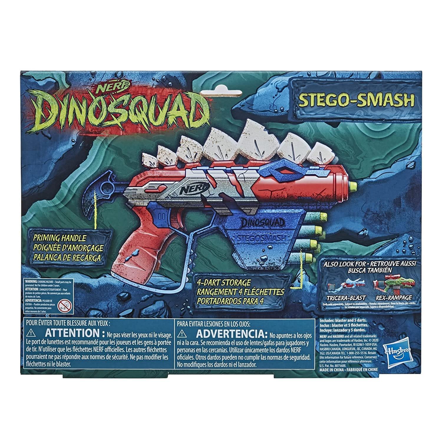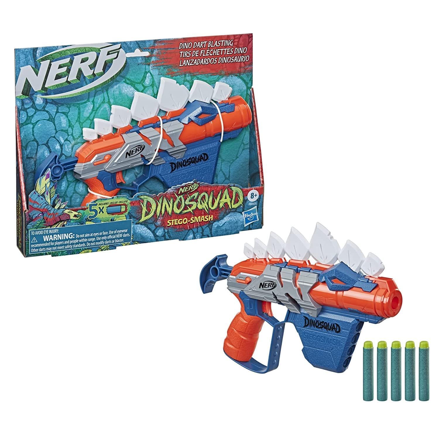 The Nerf DinoSquad Stegosmash Dart Blaster is an exciting addition to the Nerf lineup. Featuring a unique dinosaur design with Stegosaurus spikes, it comes with 5 official Nerf darts and can store up to 4 darts at once for quick reloading during battle.