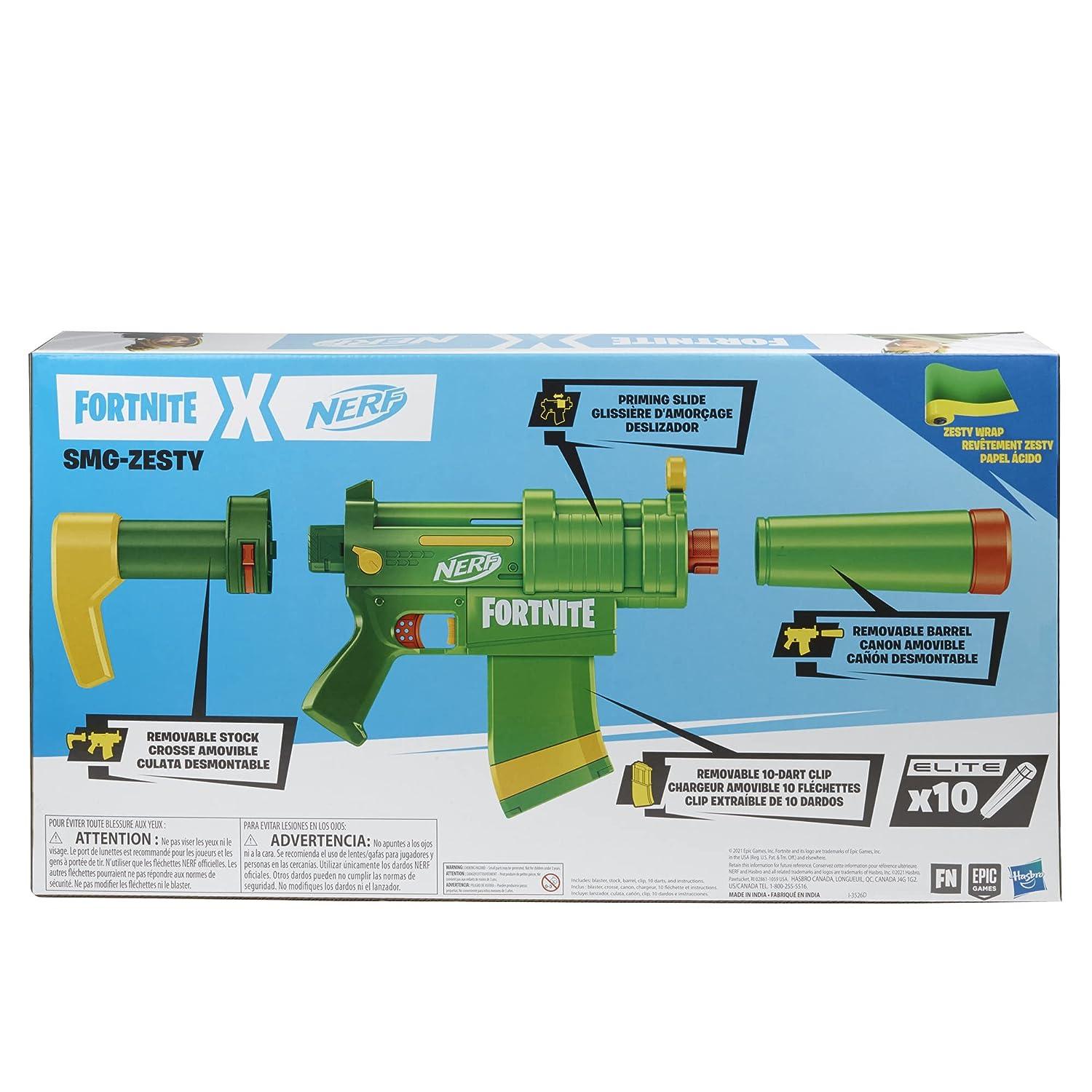 Nerf Fortnite Smg Zesty Elite Dart Blaster for Kids & Toddler – Removable Stock And Barrel, Removable 10-Dart Clip, 10 Official Nerf Elite Darts, Multicolor