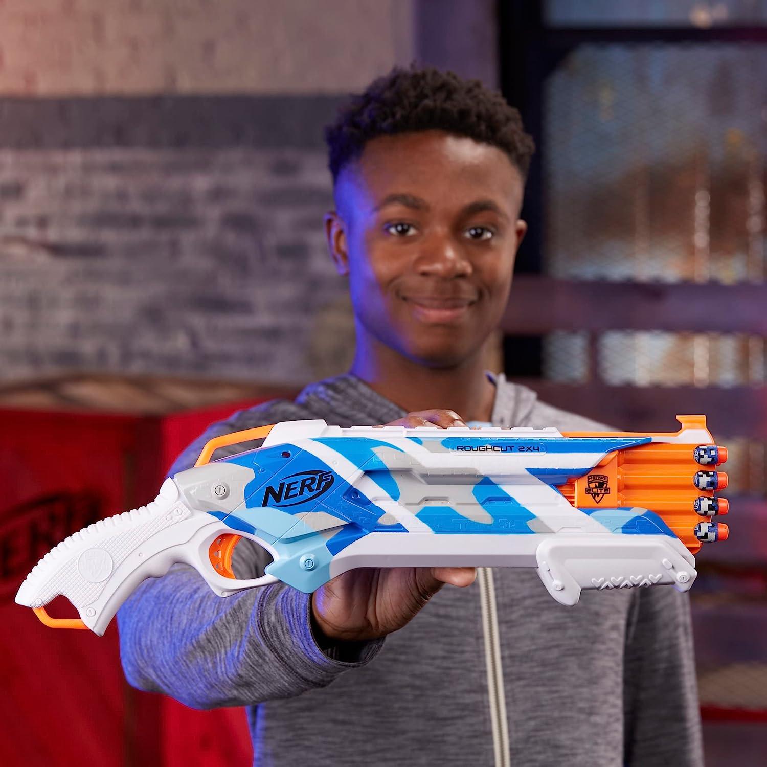 Welcome to our website featuring the ultimate Nerf N-Strike Elite BattleCamo Series Rough Cut 2×4, a must-have for kids aged 8 and up! Stand out from the crowd with its exclusive BattleCamo Series deco on both blaster and darts. This special edition comes with 16 Nerf Elite darts, each adorned with the BattleCamo design, giving you a tactical advantage in battles. Unleash a powerful barrage with the double-barrel domination, firing 2 darts simultaneously. No need to pause the action as this blaster lets you launch 8 darts consecutively before reloading, thanks to its impressive capacity. With the pump-action slam-fire mechanism, you can unleash all darts rapidly, catching your opponents off guard. Prepare for epic Nerf battles and let the BattleCamo Series Rough Cut 2×4 elevate your play to the next level!