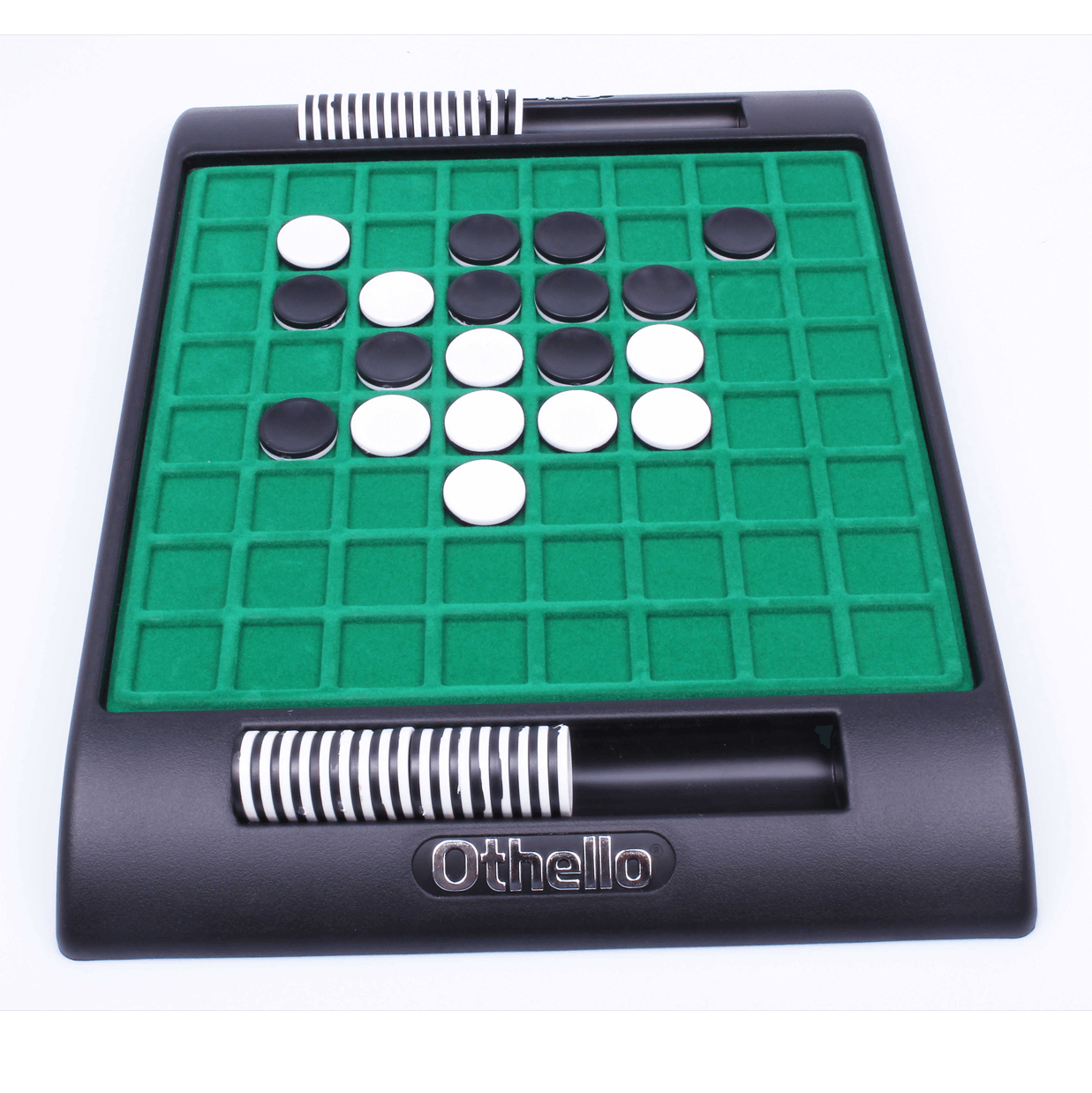 A Minute To Learn, A Lifetime To Master! Othello is a game where not all is Black and White. The lead can change hands from play to play and strategy is everything. The play is simple. Players are represented by either Black or White discs on the board. On each turn, players flank the discs of the opposing player between two of their own. Once captured, the double-sided discs are turned over and become the opposite colour. If you have a move, you have to take it whether you want to or not. That’s all, that’s the entire game. But more and more discs fall to the opposing side with each turn. Where will it all end? Starting from just four discs to begin the game, play moves all over the board with as many as 64 discs placed by the final move. Play can end when one player can’t make any more moves OR when the board is full. To add to the fun, if you can make a move but you’re out of discs, your opponent has to give you one of theirs. That’s like arming the enemy! As you become more and more familiar with Othello, certain strategies will begin to emerge. Owning a corner is always an advantage as that protects your discs in the immediate vicinity – your opponent can’t outflank you. But is your opponent backing you towards a corner so they can try to control it themselves? That’s the strategy of Othello. Can you see enough moves ahead to make your opponent put a disc somewhere they don’t want to? A minute to learn…a lifetime to master!”