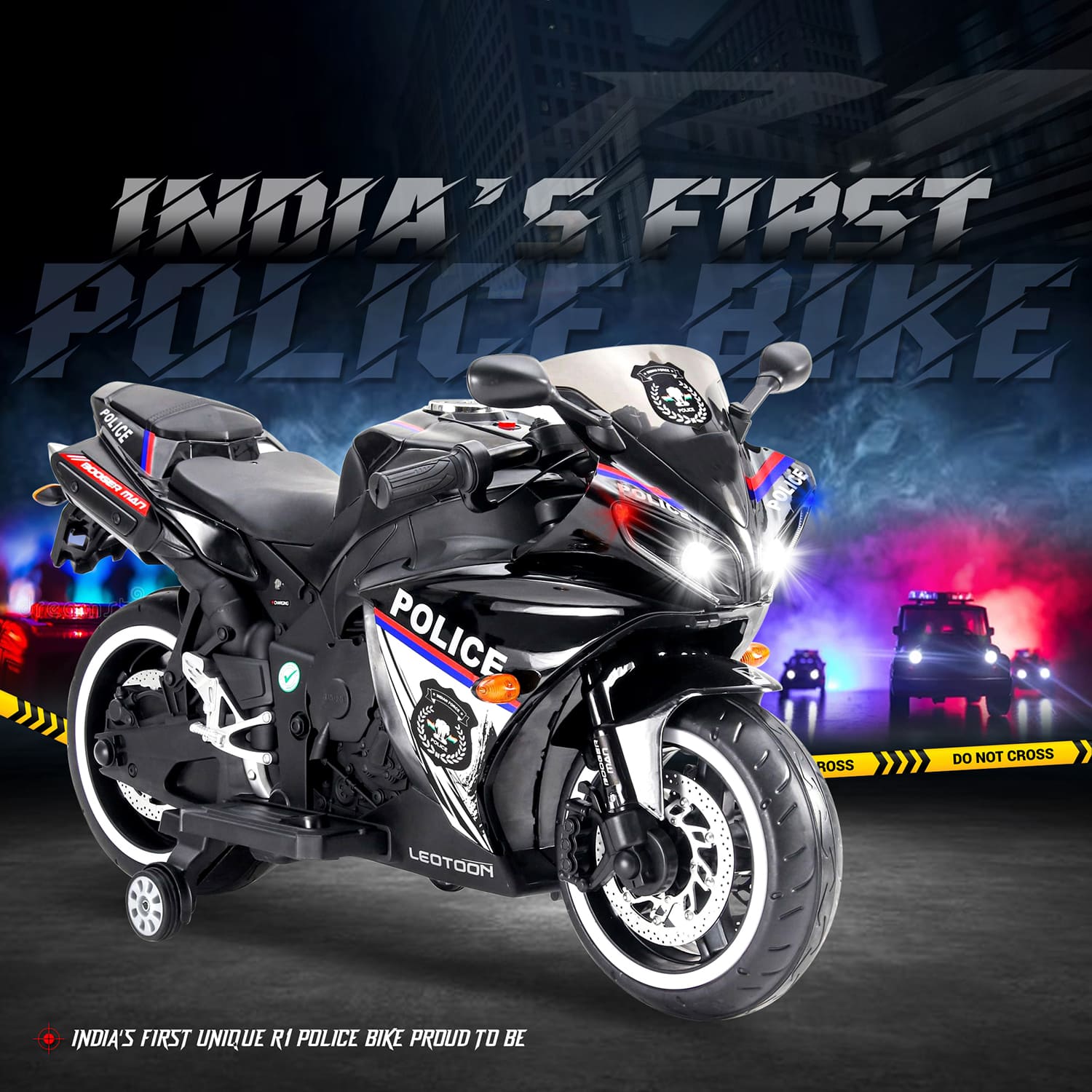 Police Electric Motor Bike Rechargeable Battery Operated Motorcycle Ride on Bike-Ride on Kids- Kids to Drive Toy Bike Suitable for for Boys, Girls Age for 3-7 Years (Black | LFB-R1-Leotoon Police Bike)