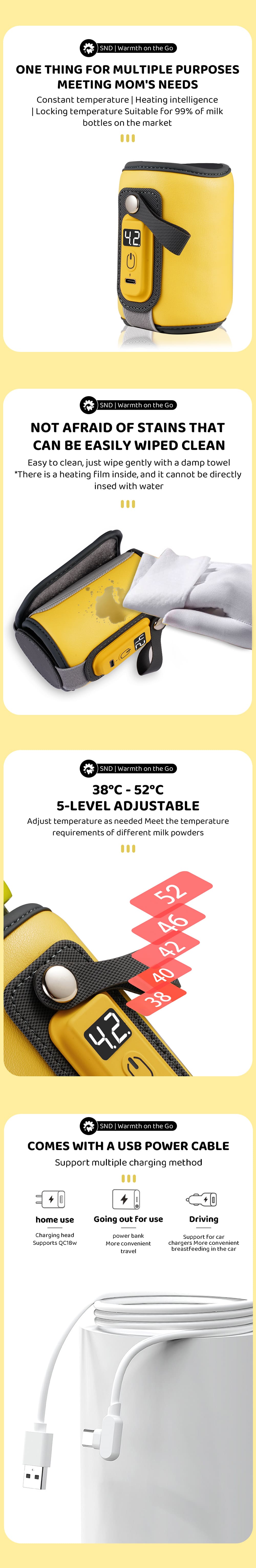 StarAndDaisy Portable Bottle Warmer Cover With 5-speed Adjustment, Quick USB Charging Baby Feeding Bottle Warmer – Yellow