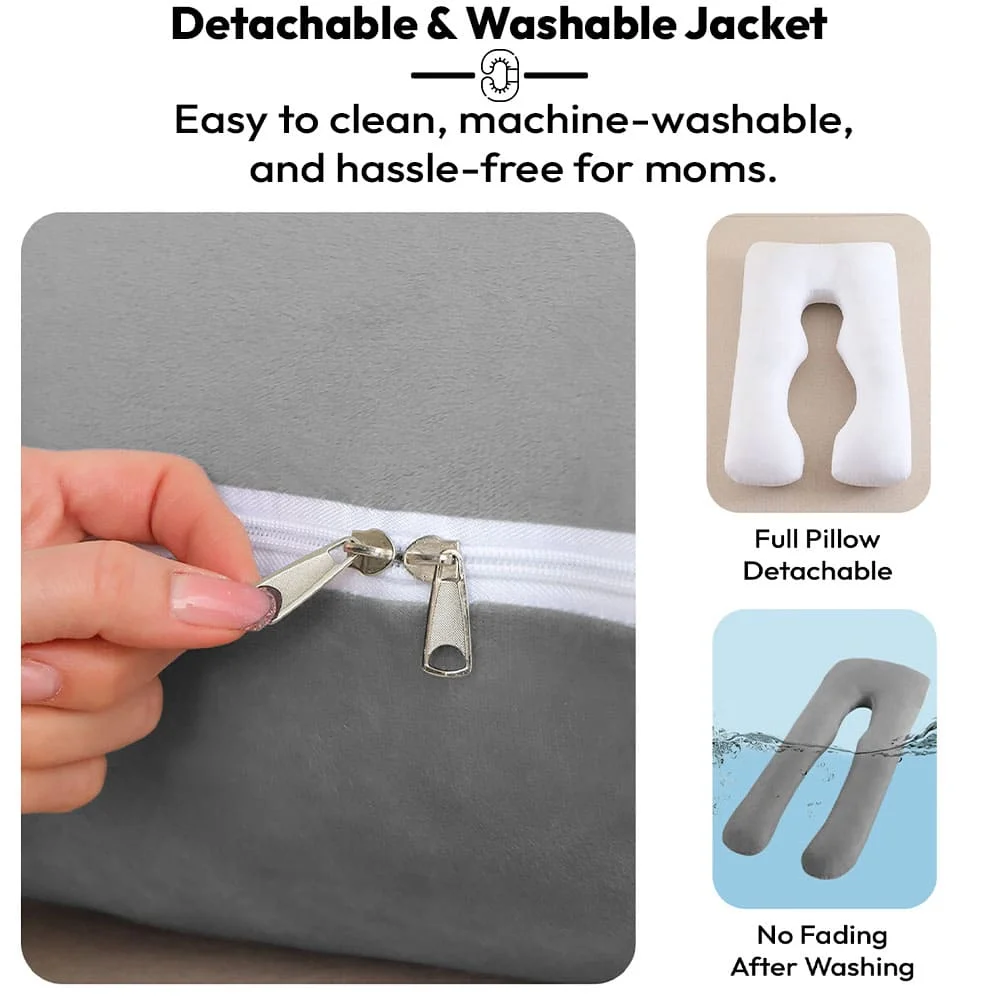 StarAndDaisy Pregnancy Pillow U Shaped for Women, Detachable and Washable Cover, Pregnancy Pillow for Full Body Support – Grey