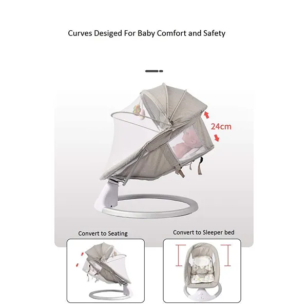 SMART BLUETOOTH ELECTRIC CRADLE CHAIR: Liberating the mother’s hands, the baby sleeps more secure, high-quality seat cloth, breathable, comfortable, soft and healthy care.