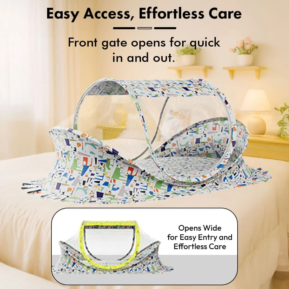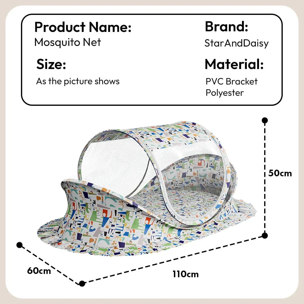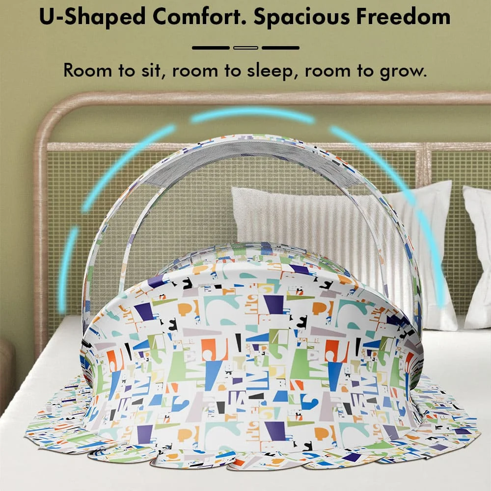 StarAndDaisy Premium Comfortable Baby Bed with Mosquito Net, Foldable Newborn Sleeping Protecting Net – Alphabet Print