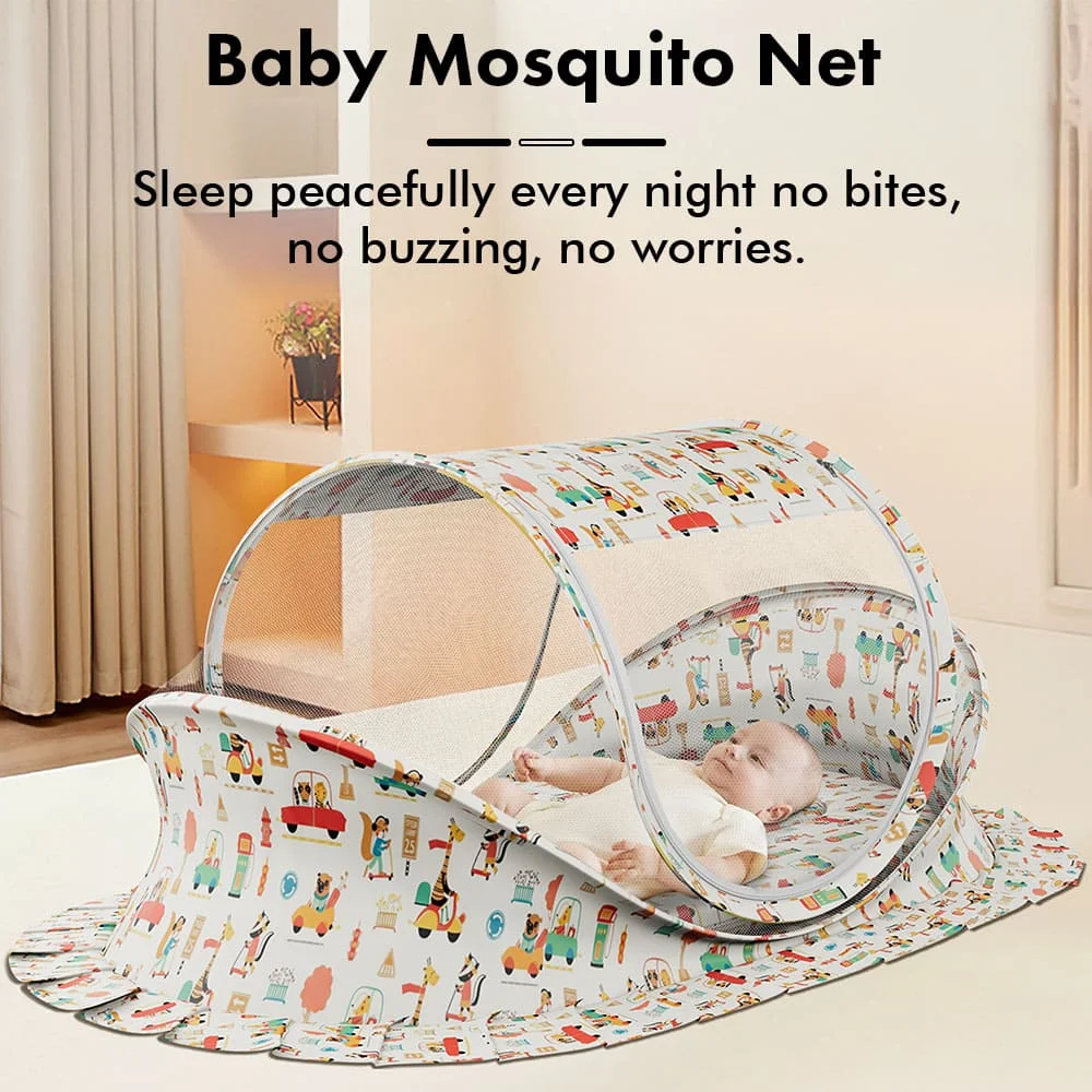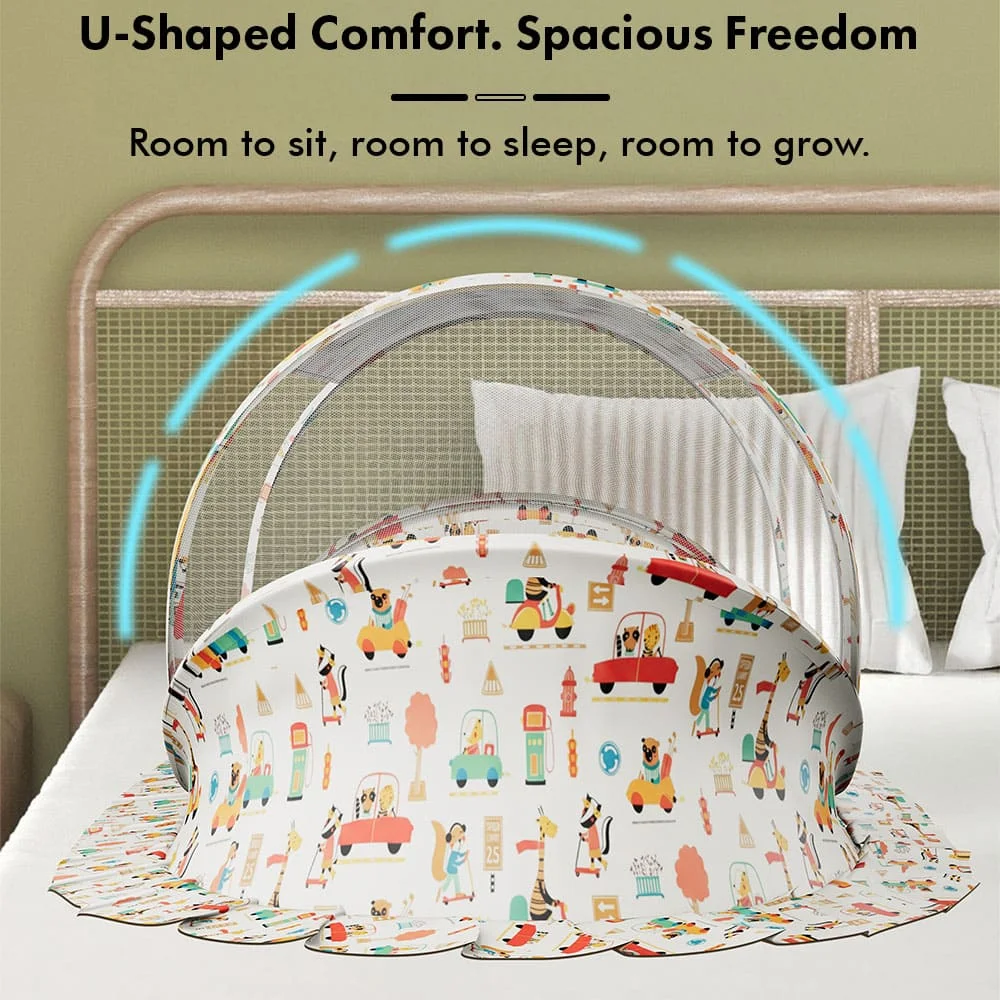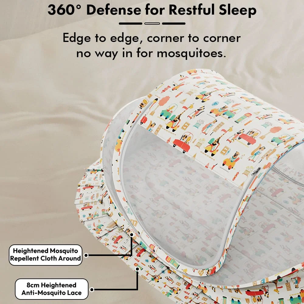 StarAndDaisy Premium Comfortable Baby Bed with Mosquito Net, Foldable Newborn Sleeping Protecting Net – City Print