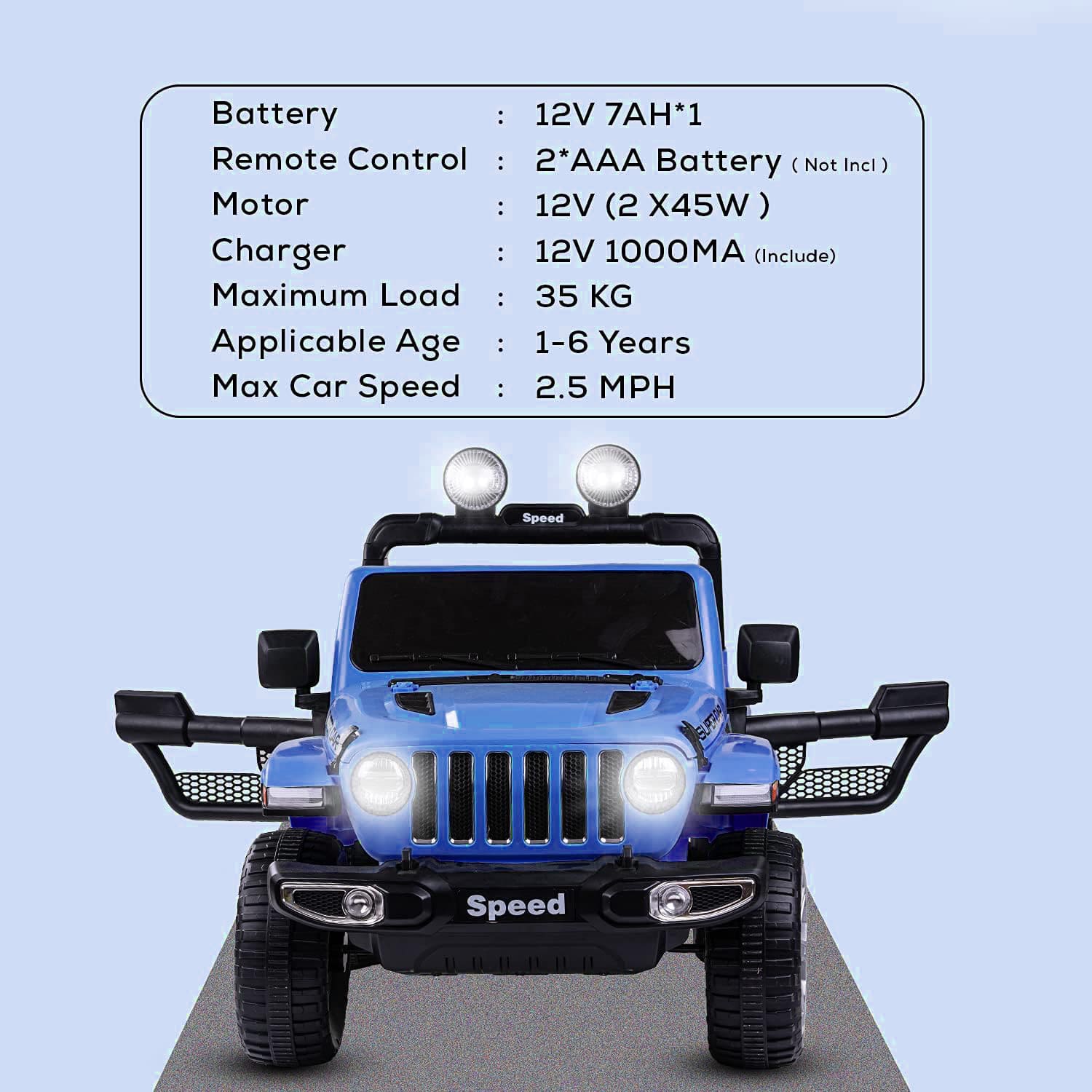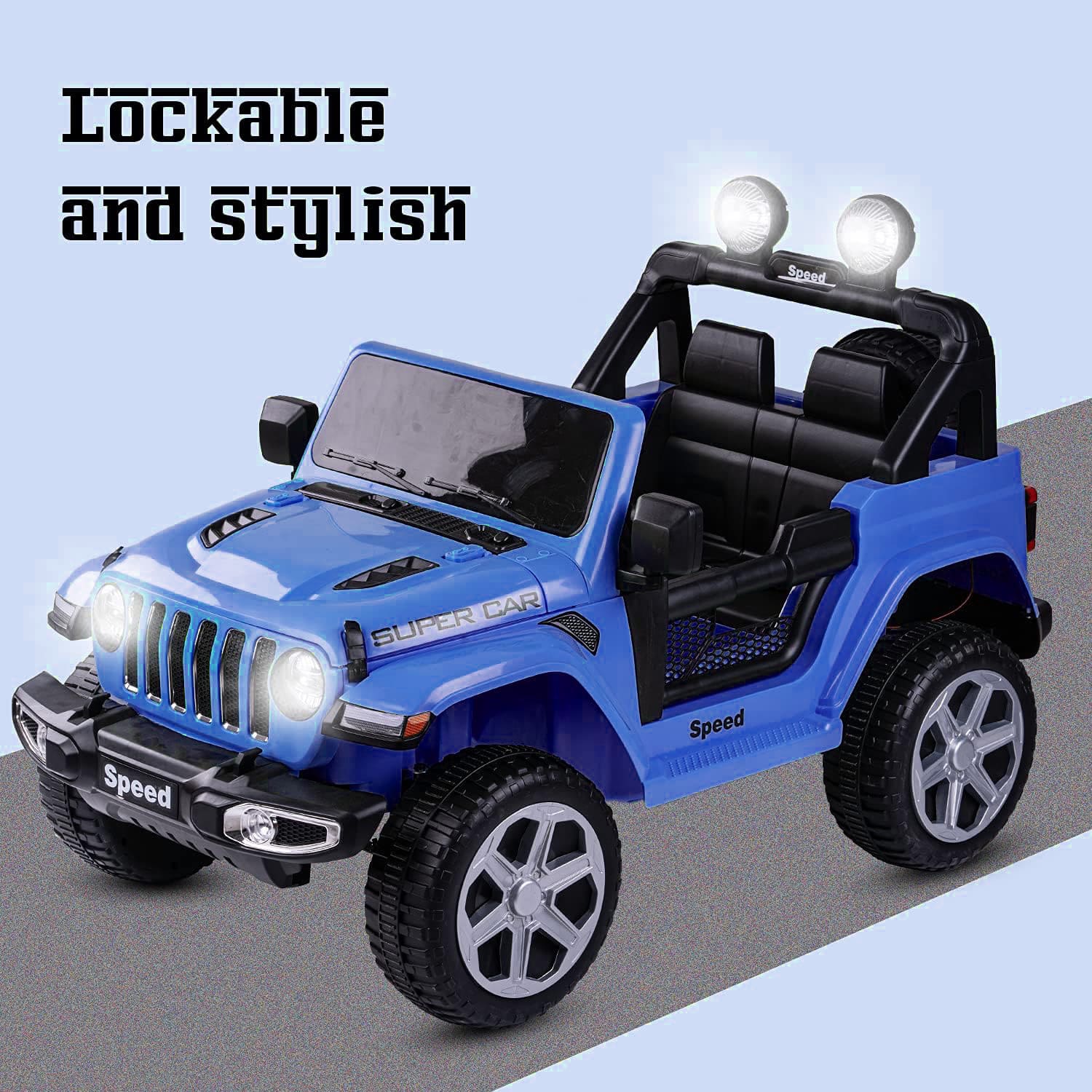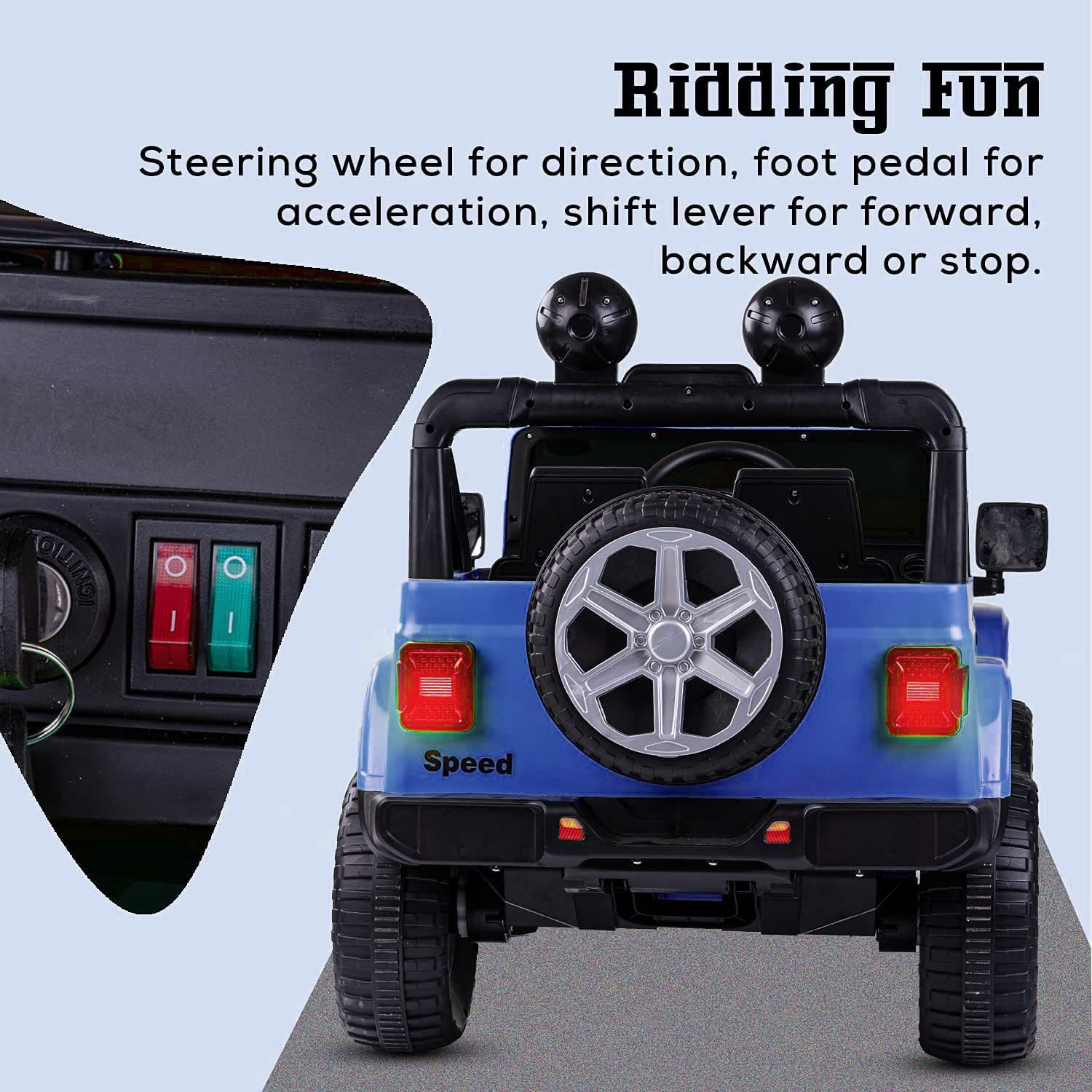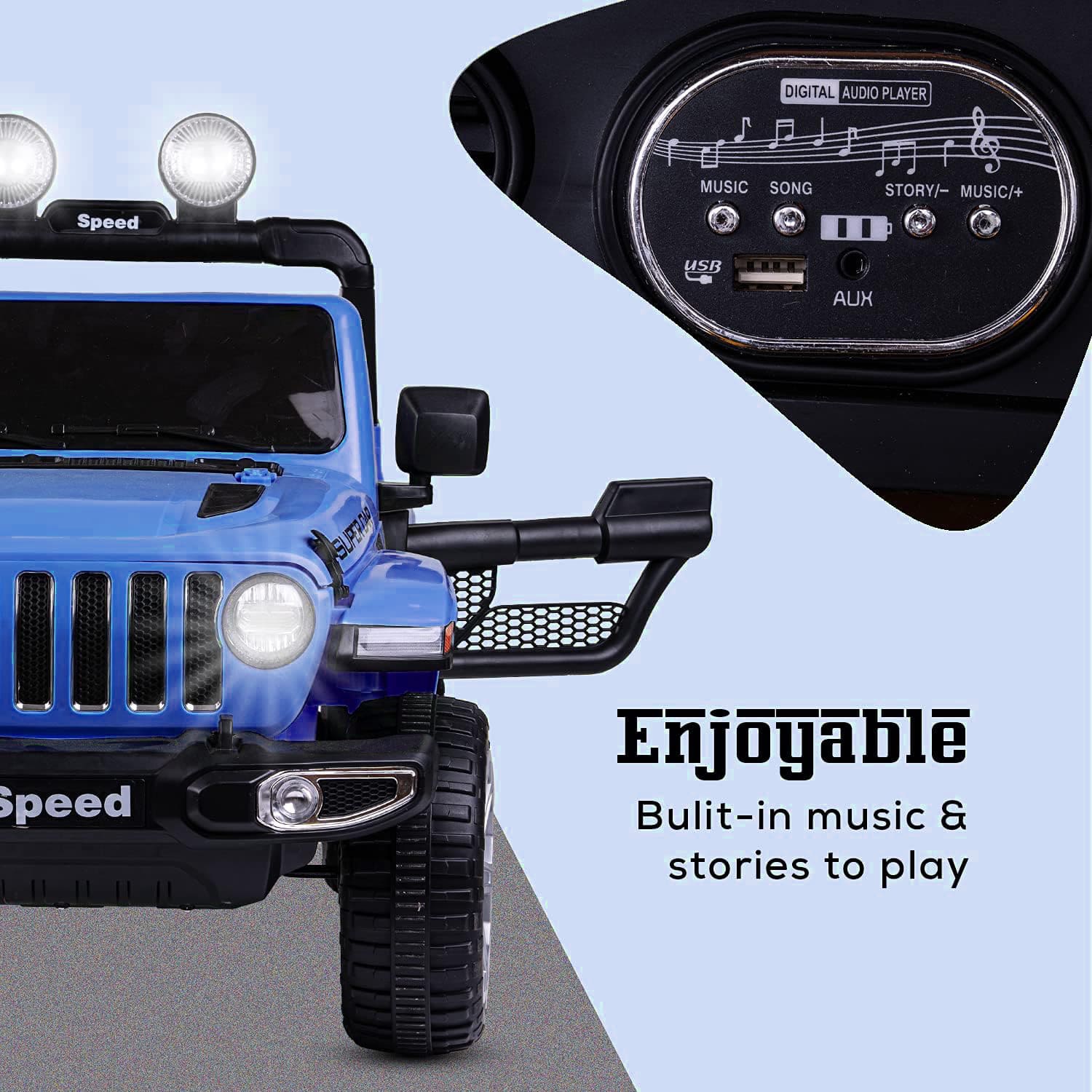 StarAndDaisy Rechargeable Battery Operated Electric Kids Car Jeep with Light and Music – Blue – LFC-FT938