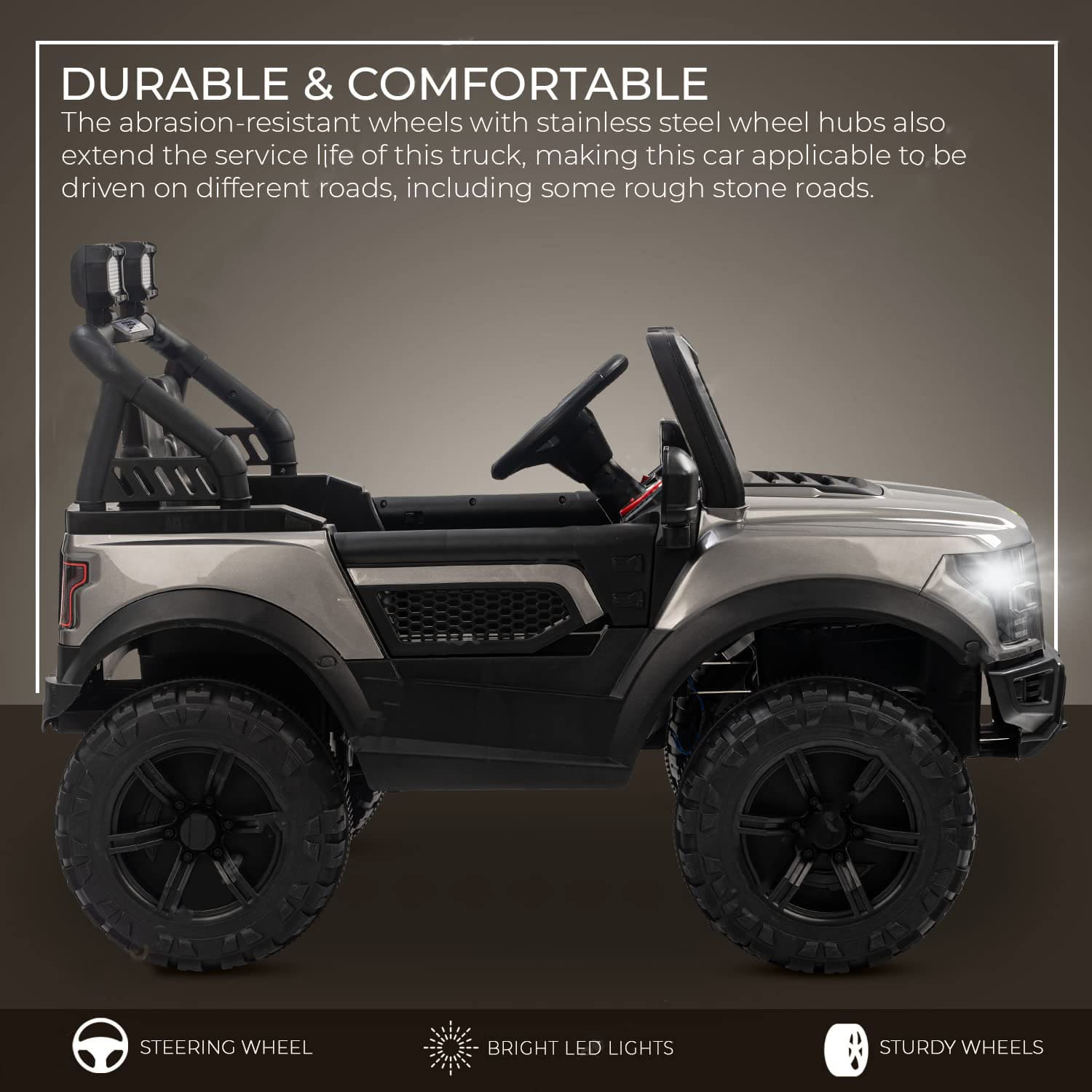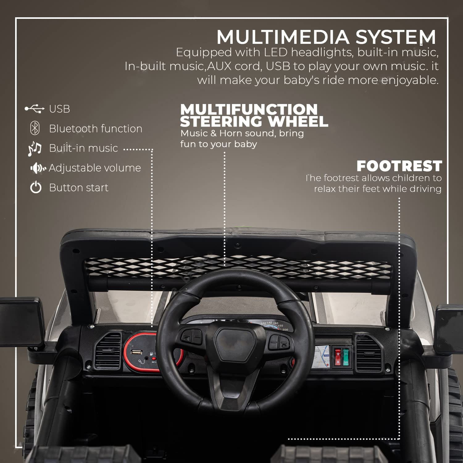 Rechargeable Battery Operated Ride On Jeep for Kids, Ride on Toy Kids Jeep with Bluetooth & Music, Rechargeable Electric Jeep Car for Kids to Drive 3 to 8 Years Boys Girls (Grey | LFC-J21M-P)