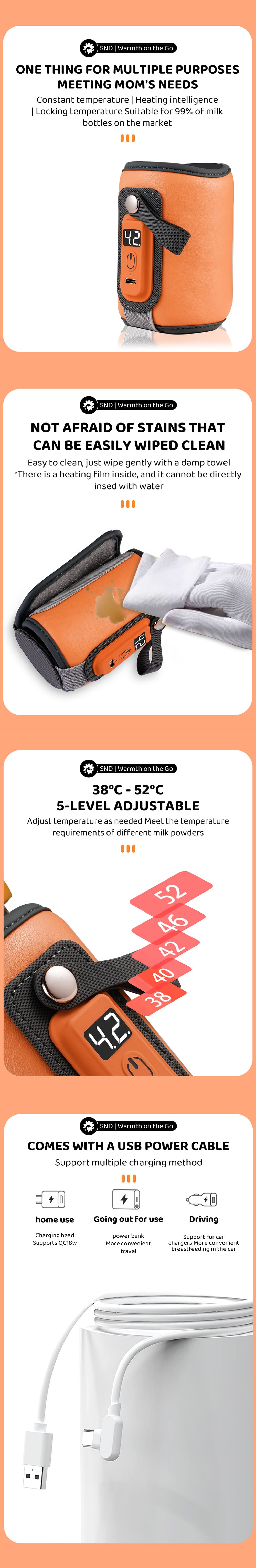 StarAndDaisy Rechargeable Feeding Bottle Warmer With 5-speed Adjustment, Quick USB Charging – Orange
