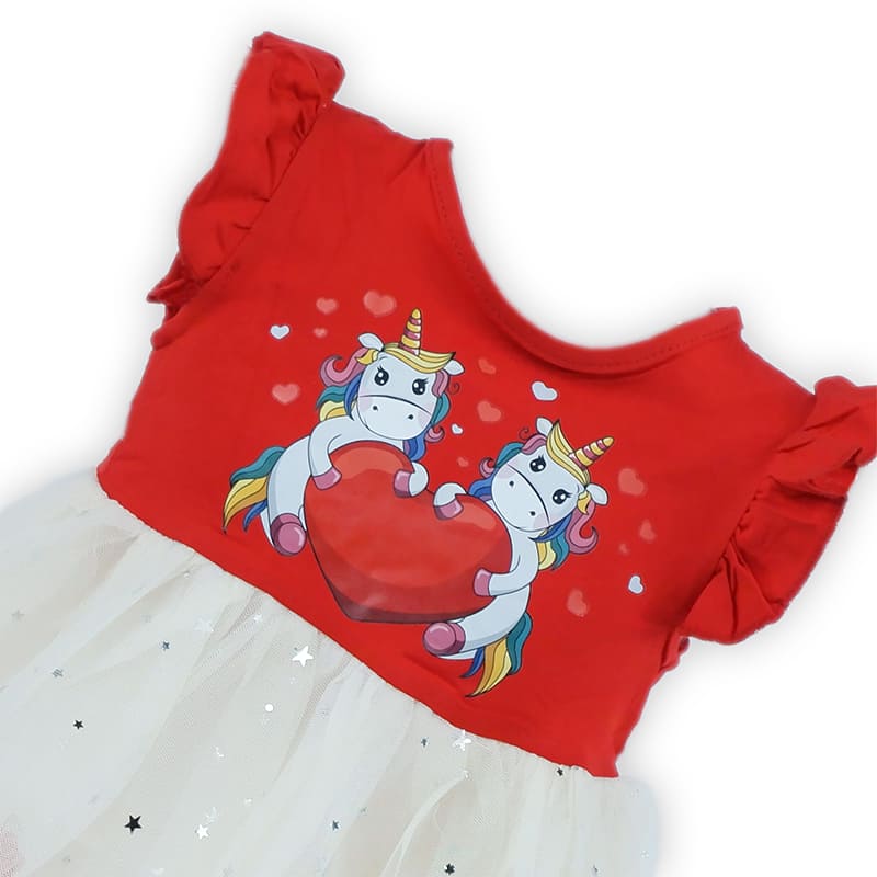 Cinderella’s Red Unicorn Heart Belle Dress for Girls will create a cute Disney-themed look for your little girl.