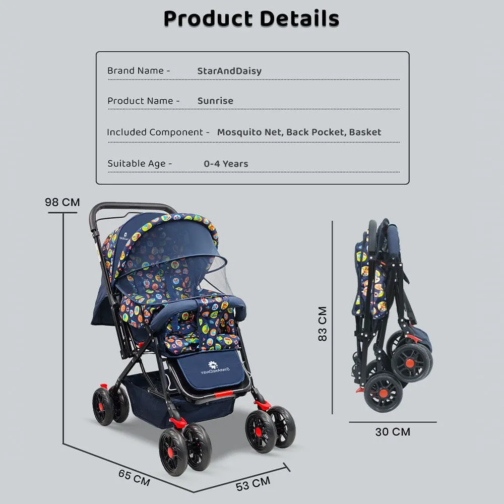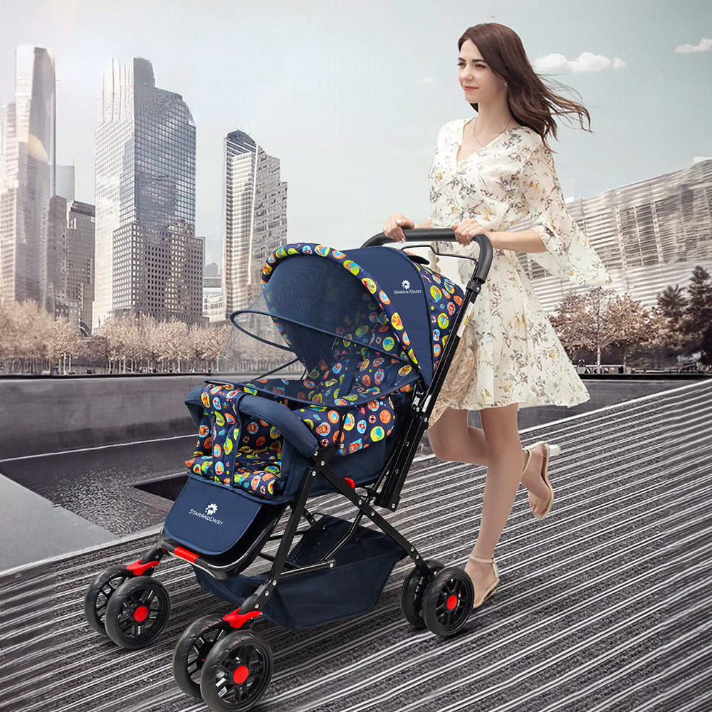 [Refurbished] StarAndDaisy Dual Facing Stroller for Baby with Mosquito Net, Newborn Stroller with Extended Canopy & Peek-a-boo Window – Rounded Print