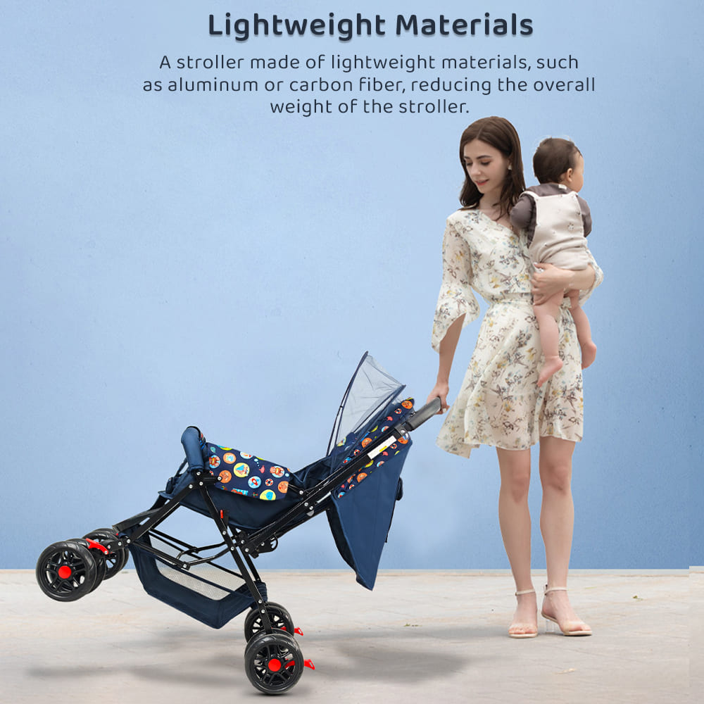 The stroller is lightweight yet strong, making it easy to push and carry. The smooth wheels work well on all surfaces, from pavements to parks. The adjustable seat lets your baby sit or recline as needed, and the safety harness keeps them secure. There’s also a spacious basket for carrying essentials like diapers, bottles, and toys. With its easy folding design, this stroller is simple to store and travel with. It’s a must-have for every parent who wants safety, comfort, and convenience on the go.