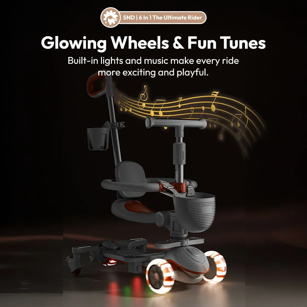 [Refurbished] StarAndDaisy 6-in-1 Scooter for Kids With Canopy, Toddlers Scooters with Seat, Push Handle, 360-degree Dual Brake & Anti-Skid Footrest – Grey Orange